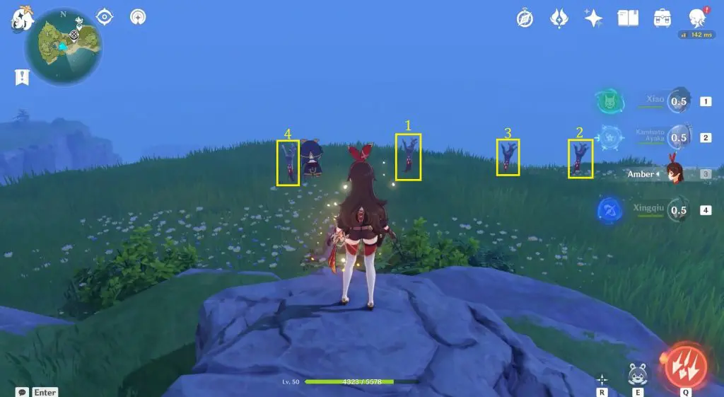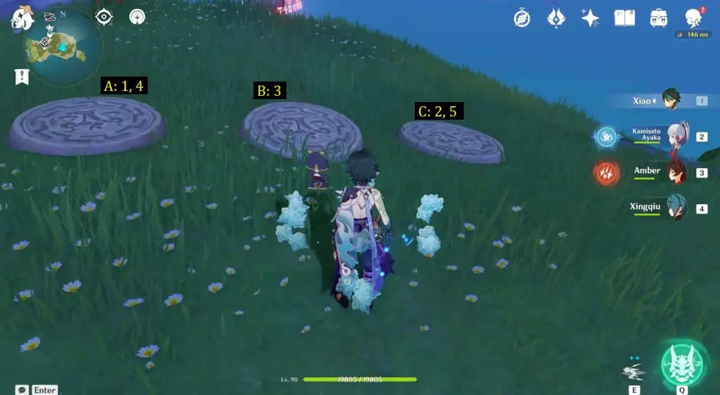 You will see four switches here and some patterns in the sky. Your objective here is to make the patterns in the sky disappear. To do so, step on the switches in the sequence shown below. After that enter the portal and you will find the Luxurious chest in front of the pool in the Mona Domain.