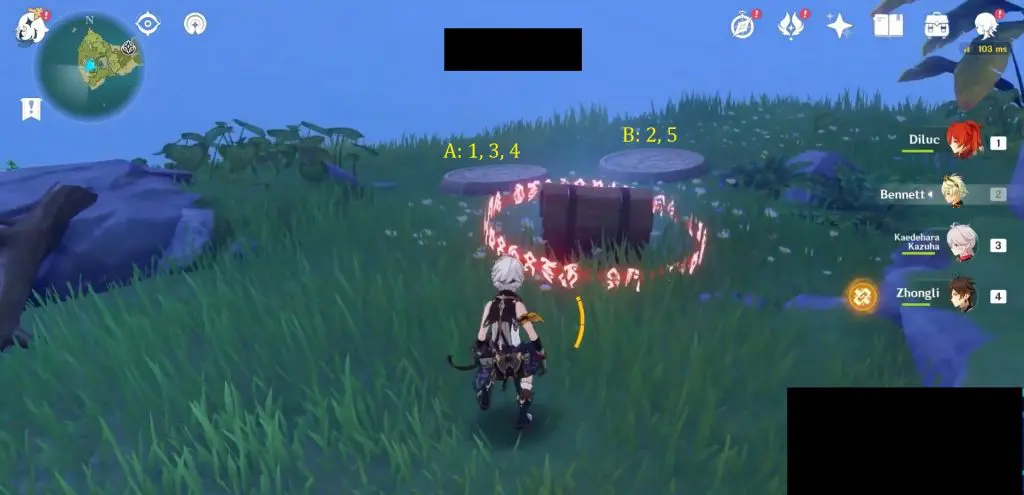 Go to the location shown in the picture below. Here you will find 2 pressure plates. You need to stand on the plates in the same sequence as shown by the pattern of stars in the constellation (See the second and third pictures below). On solving the puzzle, the common chest there will be unsealed.