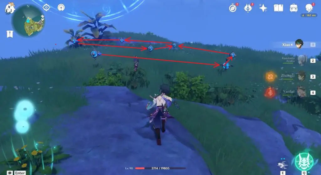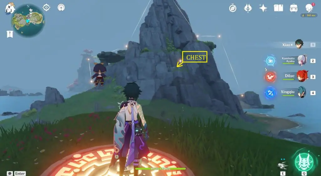 Go to the location shown in the picture below and chase the Starlight on the wall as shown in the second picture below. The Starlight will lead you to a plate. Stand on the plate and capture the Starlight. This will make a constellation appear in the sky and a common chest will also spawn at the location shown in the third picture below. You will have to dig this common chest.