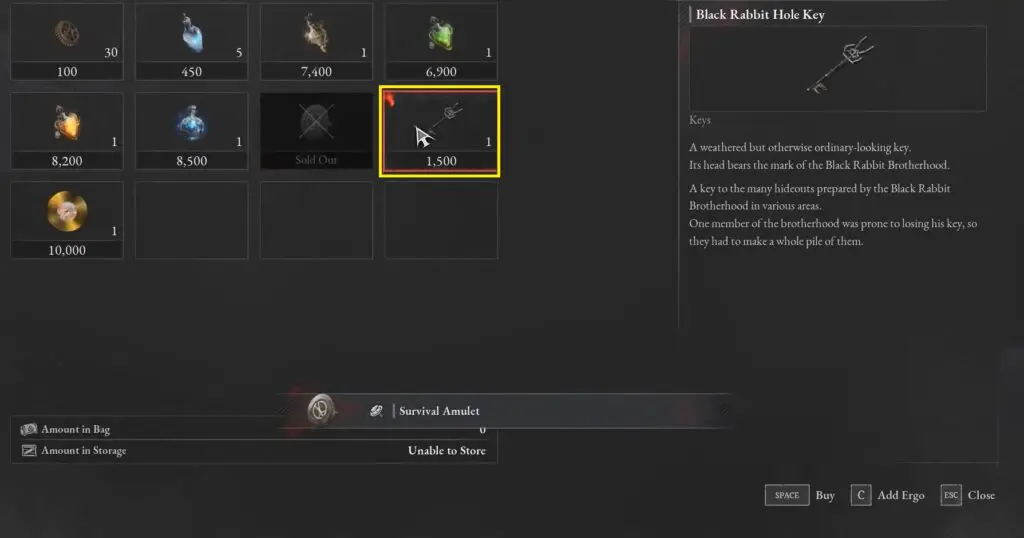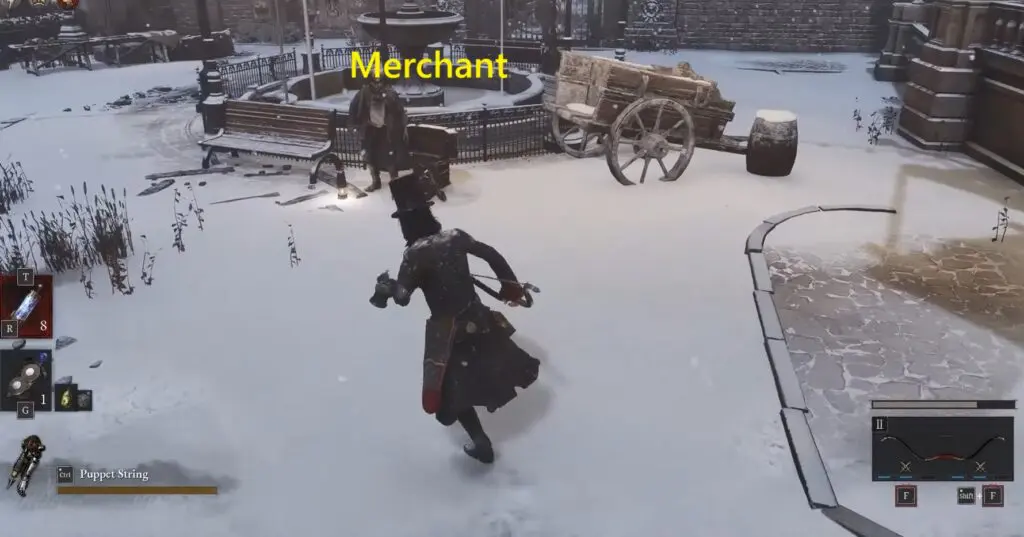 Then, look for a Wandering Merchant NPC near the fountain. Talk to him and purchase a Black Rabbit Hole Key for 1,500 Ergo.