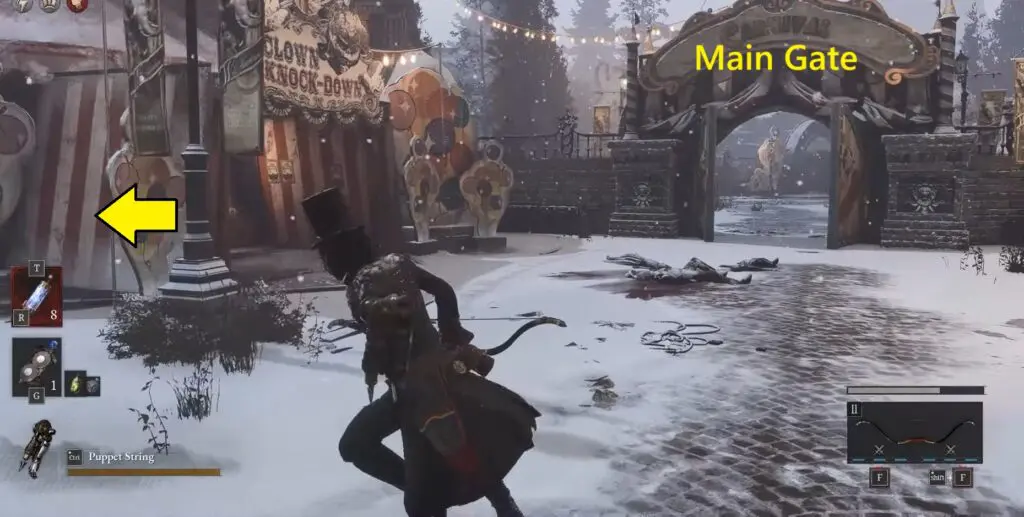 Follow the path on the left side of that Clown Knock-Down tent to go behind it. There, you’ll see a building.
