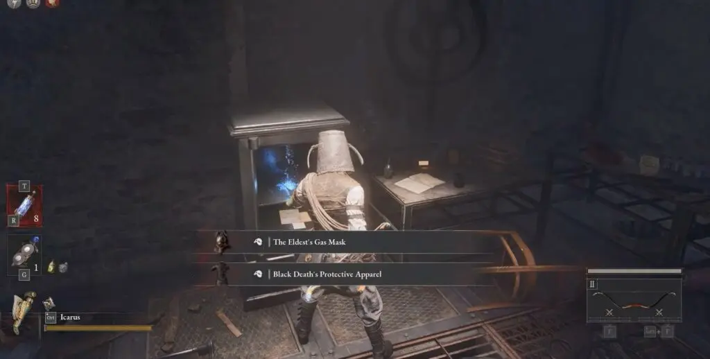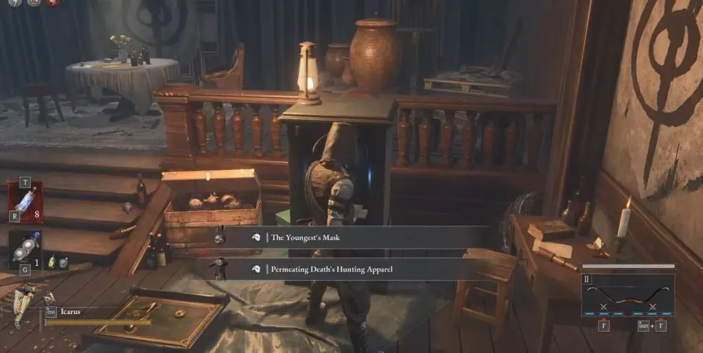 Use the Black Rabbit Hole Key to unlock the door and go inside. Reward: The Eccentric’s Mask, Piercing Death’s Hunting Apparel.