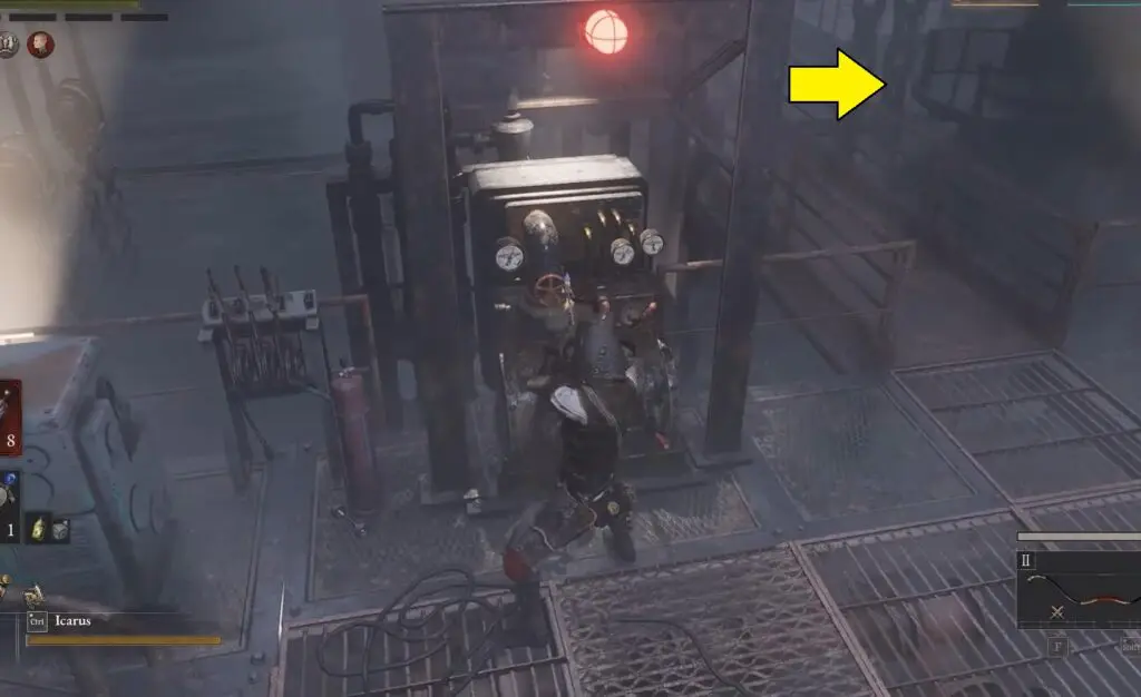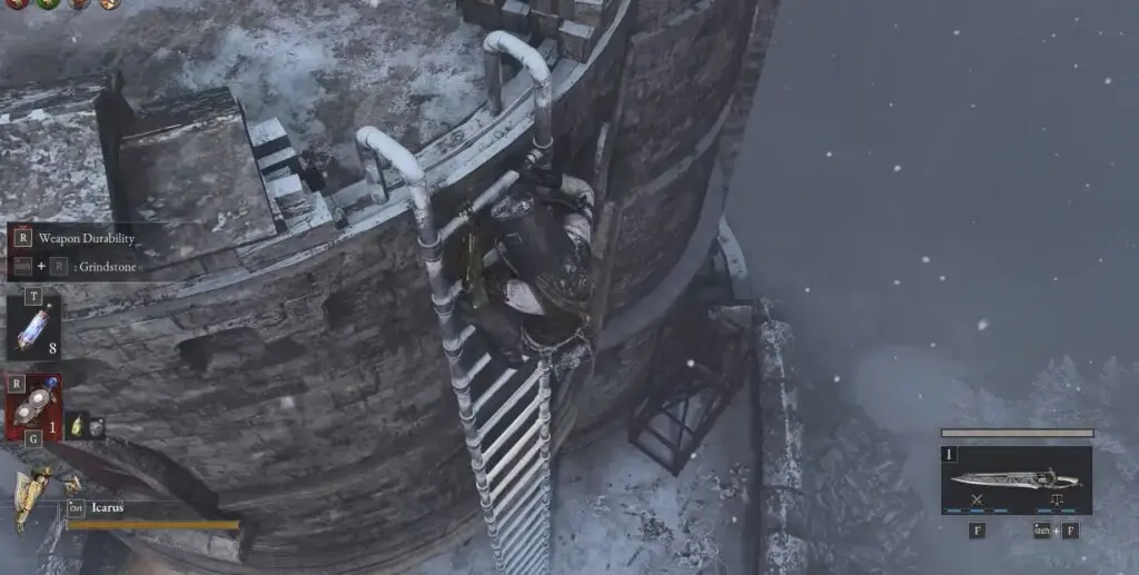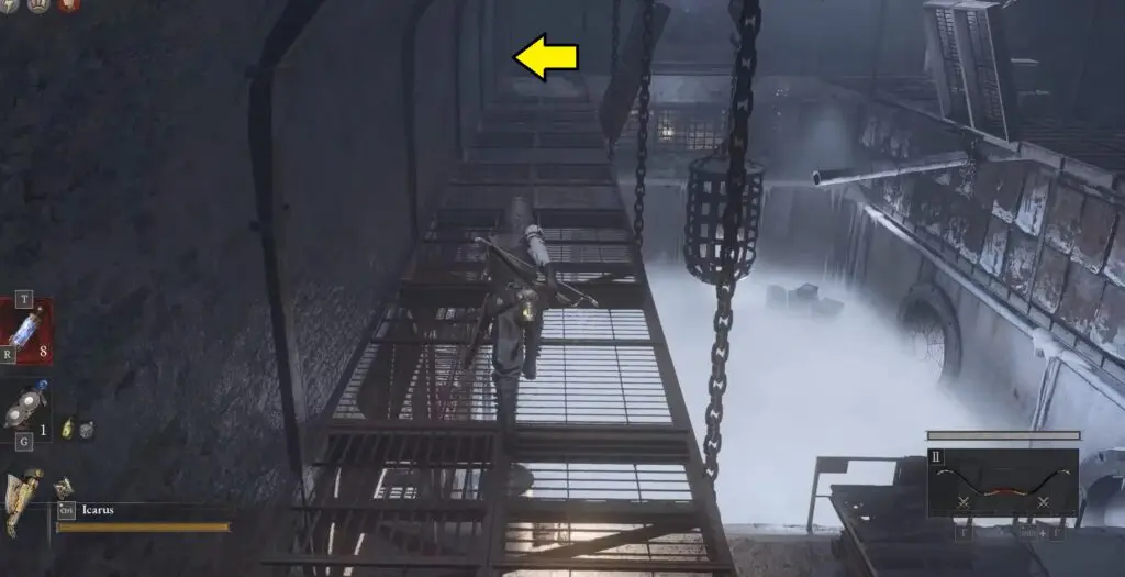 After dropping down, you’ll find a ladder — climb down three levels of the ladder.