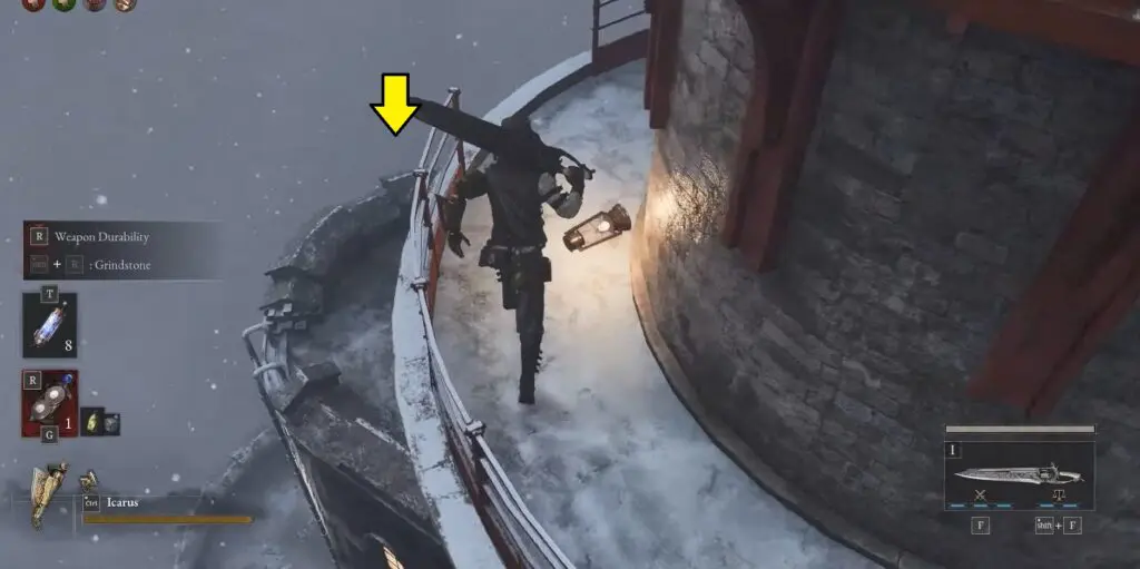 Head to Kratz Lighthouse and begin climbing to the top. Once you reach the upper level, walk around the circular platform with the railing and look for an opening where you can drop down.