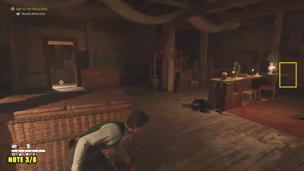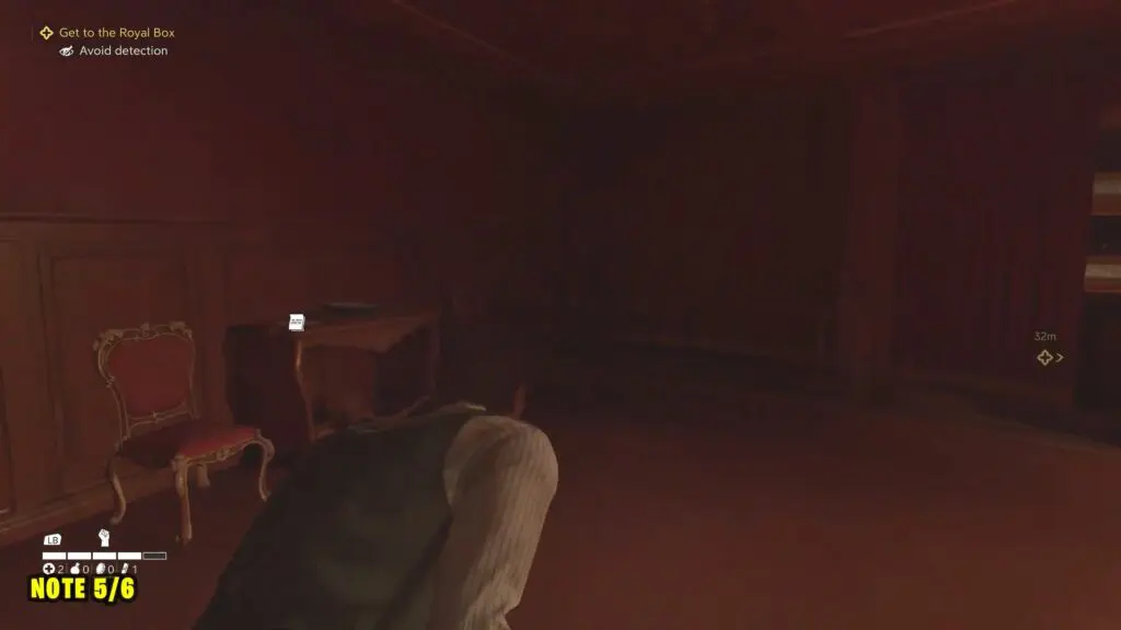 Follow the main story until you reach the objective “Get the Royal Box.” Go upstairs to the first room, where you’ll find the note on a table to the right.