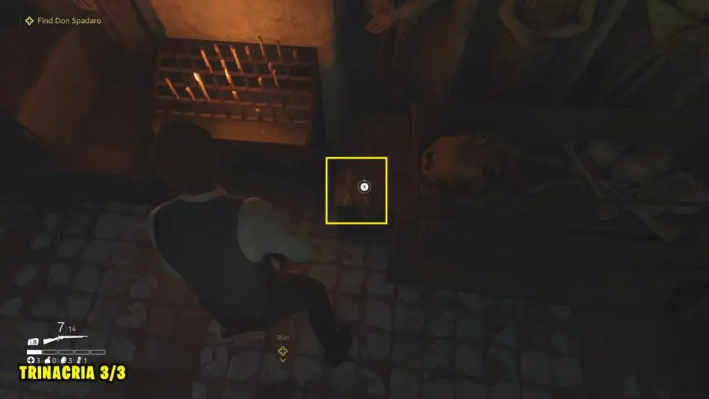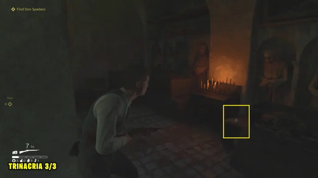 After exiting the underground section, you can find Trinacria 3/3 on a small wooden table as you progress toward stopping Don Spadaro.
