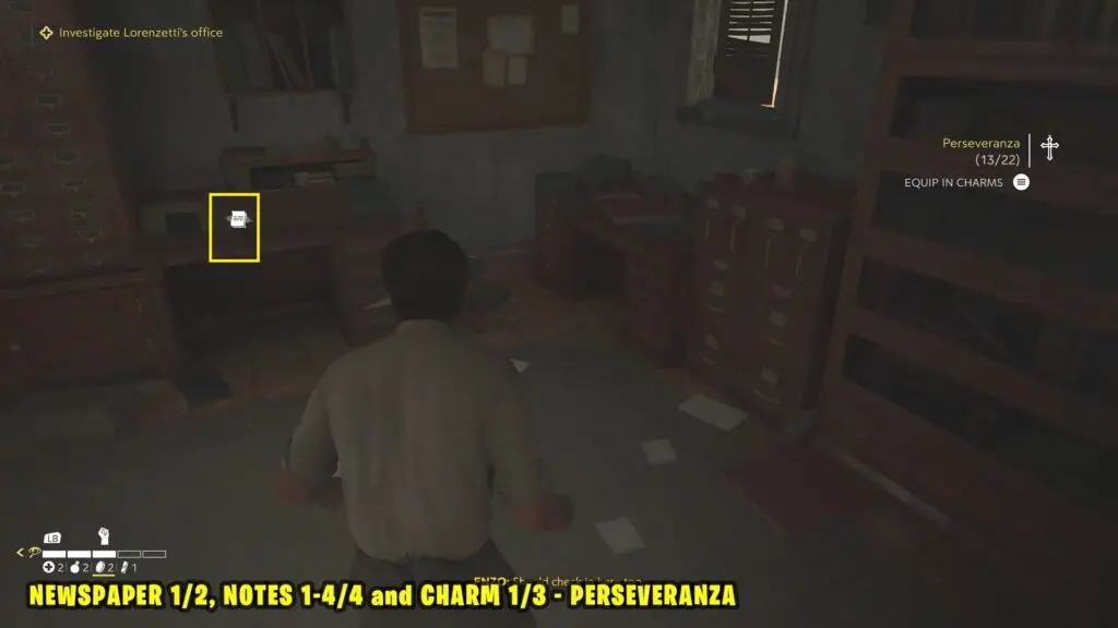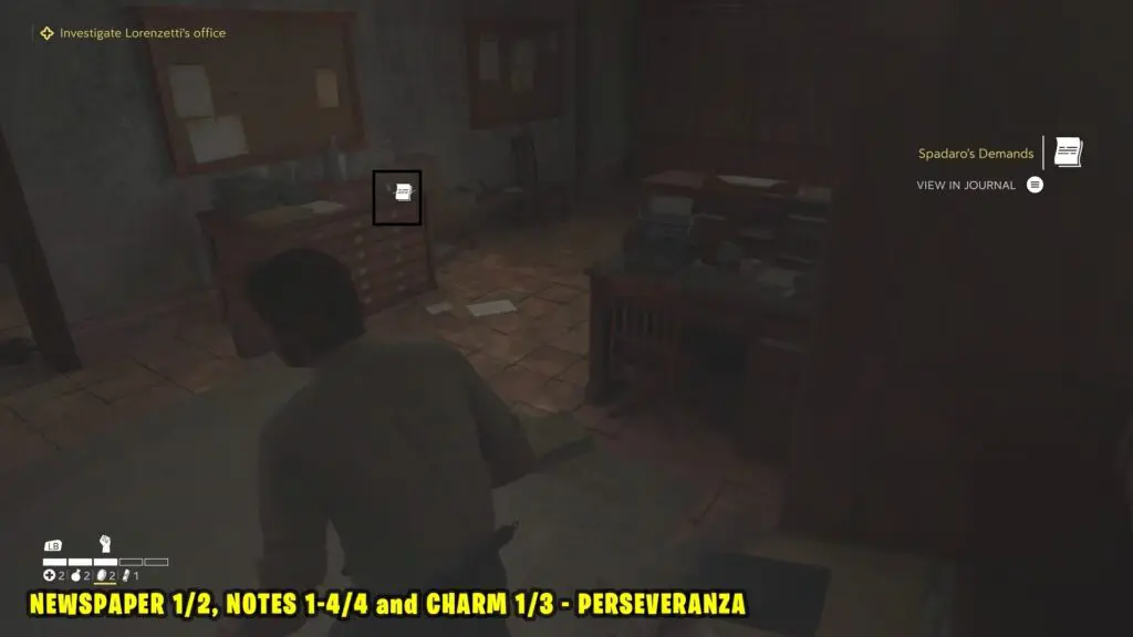 Enter Lorenzetti’s Office and locate the note on the table directly ahead.