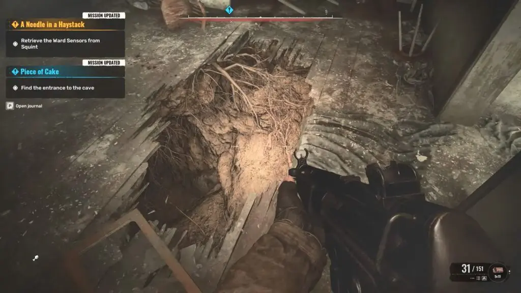 Enter the hole in the floor and follow the tunnel to reach the cave.