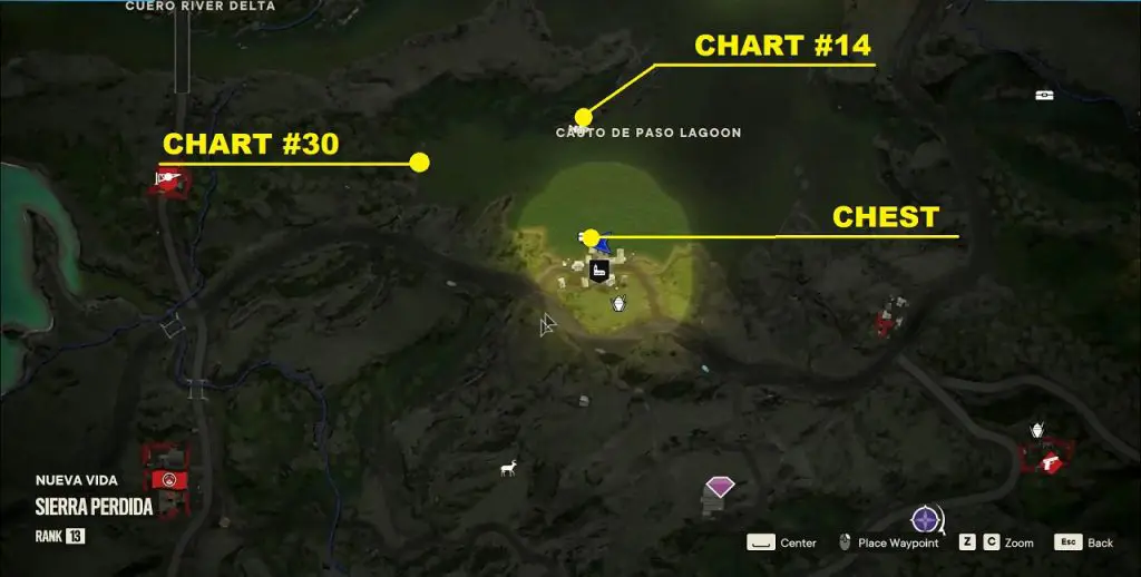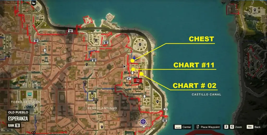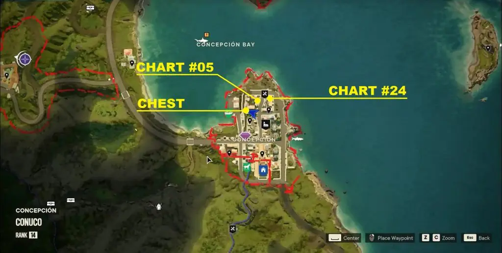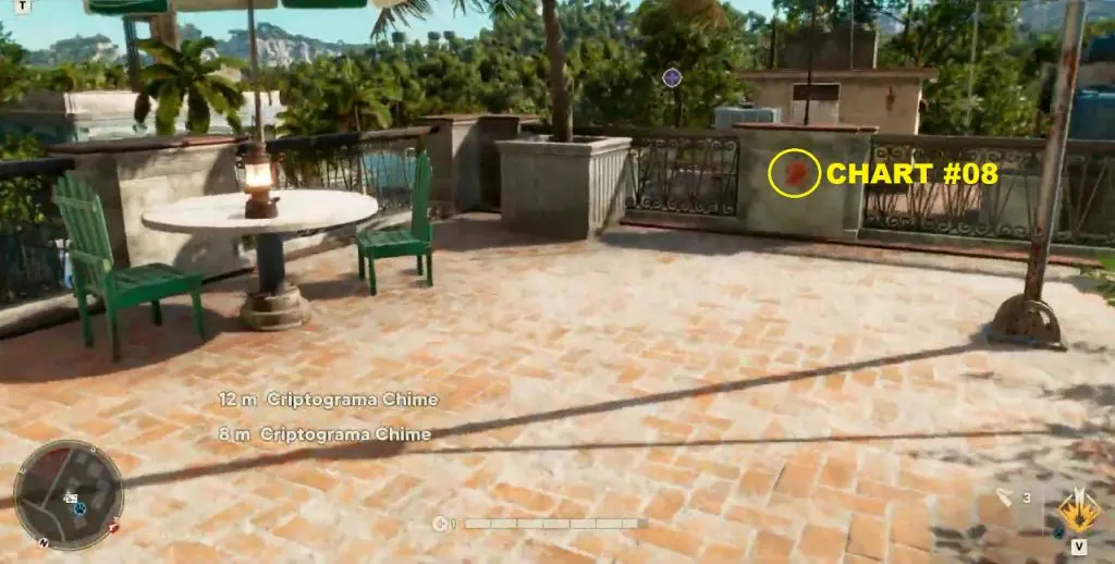 You will find blue markings pointing towards the charts. There is also a wind chime near the chest and charts. You can follow the noise of the wind chime to locate them. This article shows the location of all 15 Criptograma Chests & 30 Criptograma Charts in the game.