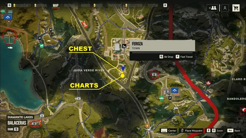 The Criptograma Chest is at the highlighted location in Feroza Town in the Balaceras region in Valle De Oro.
