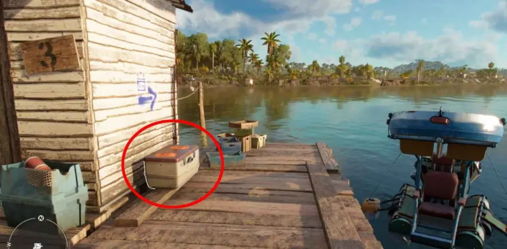 The Criptograma Chest is on the jetty in the Barriga Swamps in the Sierra Perdida region in El Este.