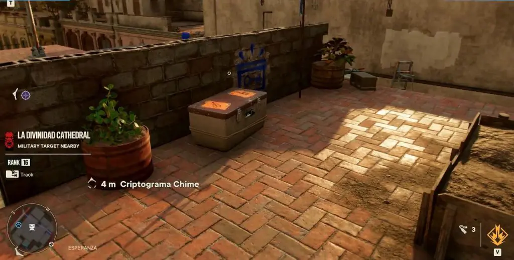 This Criptograma Chest is on the rooftop north of the La Divinidad Cathedra in the Esperanza region as shown below.