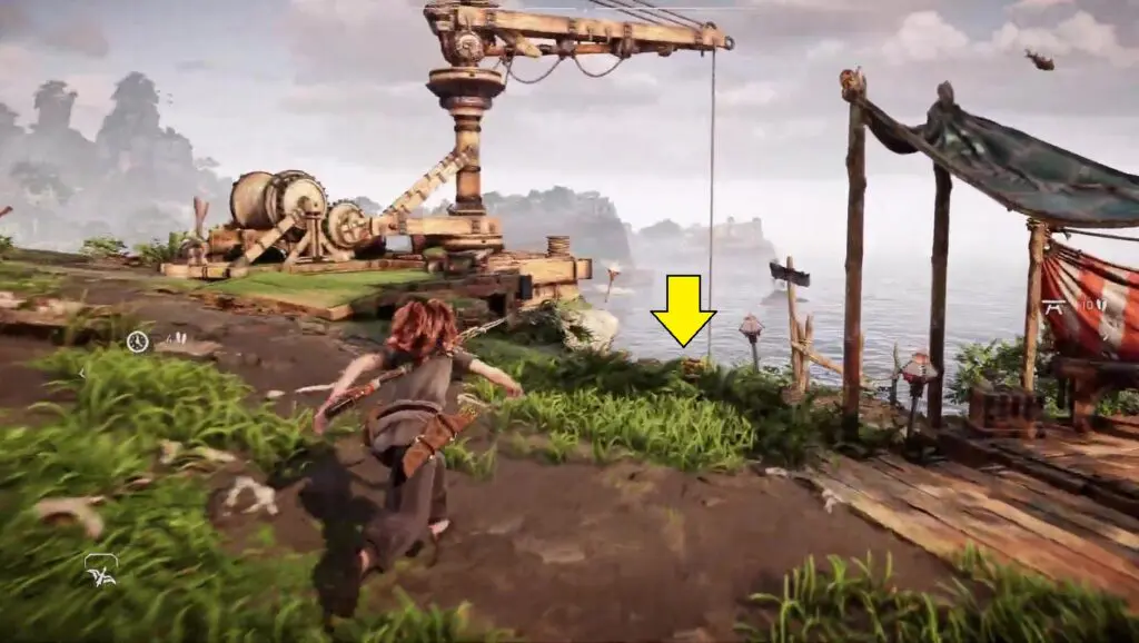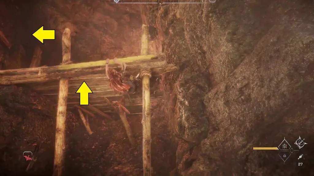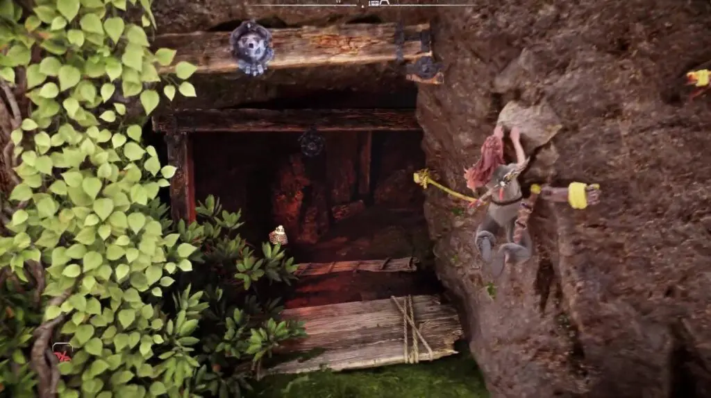 Ascend to the summit of the wooden platform and venture into the cave to locate the Trinket within.