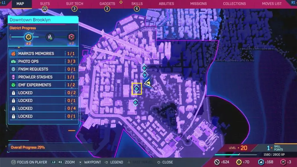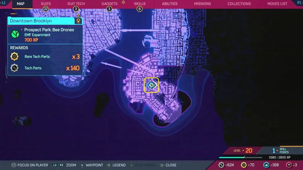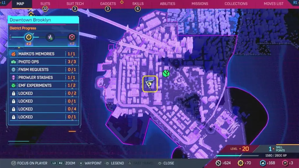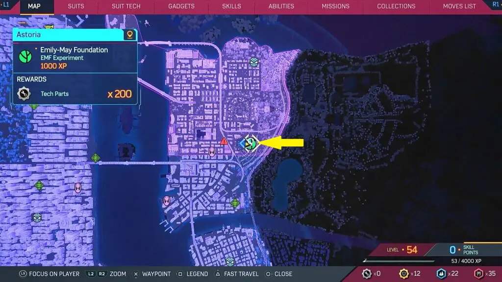 This guide shows the location of all EMF Experiments and how to complete them in the Spiderman 2 game, which released on 20 October 2023. They can be completed only by playing as Peter. It first unlocks after Mission 7: Healing the World. If the experiment is not available in your game, that means you need to progress further in the main story. Completing all EMF Experiments unlocks the Foundational trophy and Life Story suit.
