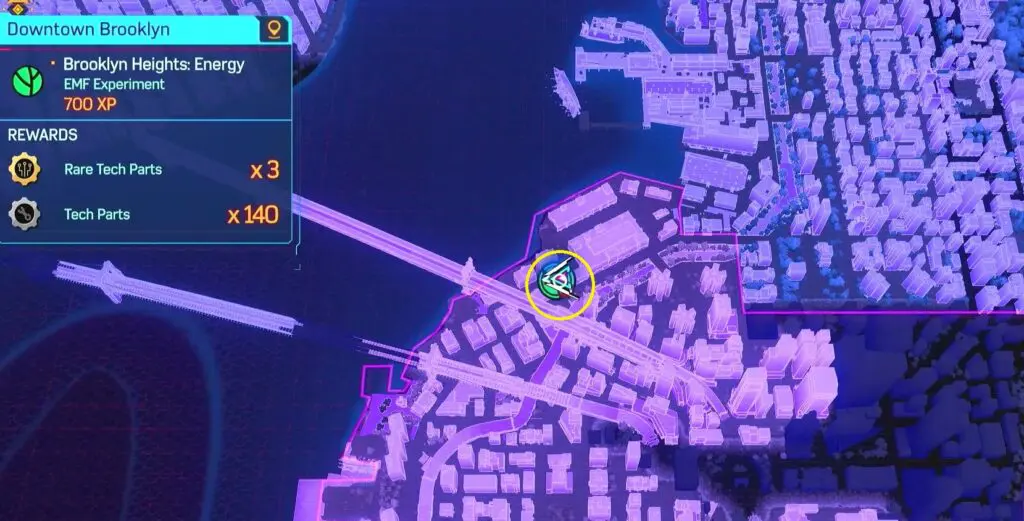 In this experiment, you need to use web-wings to go up to a certain height and place wind turbines. To start, go to the marked spot to begin the EMF Experiments – Brooklyn Heights: Energy.