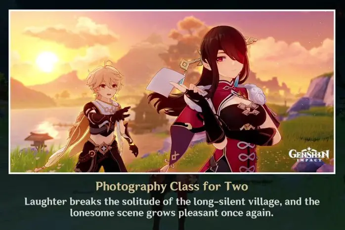 Now go to the fishing village near Wangshu Inn. Follow the story. Finally when it is time to take a picture, select “Maybe go for something a little… flirtatious?”. This will unlock the second ending.
