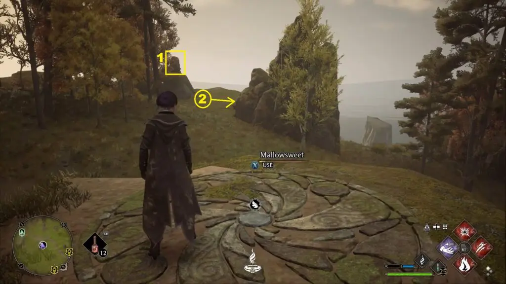 After using the Mallowsweet, destroy the five stone pillars around the symbol. All the stone pillars are very easy to spot, except one which is a little bit far as shown in the second picture below.