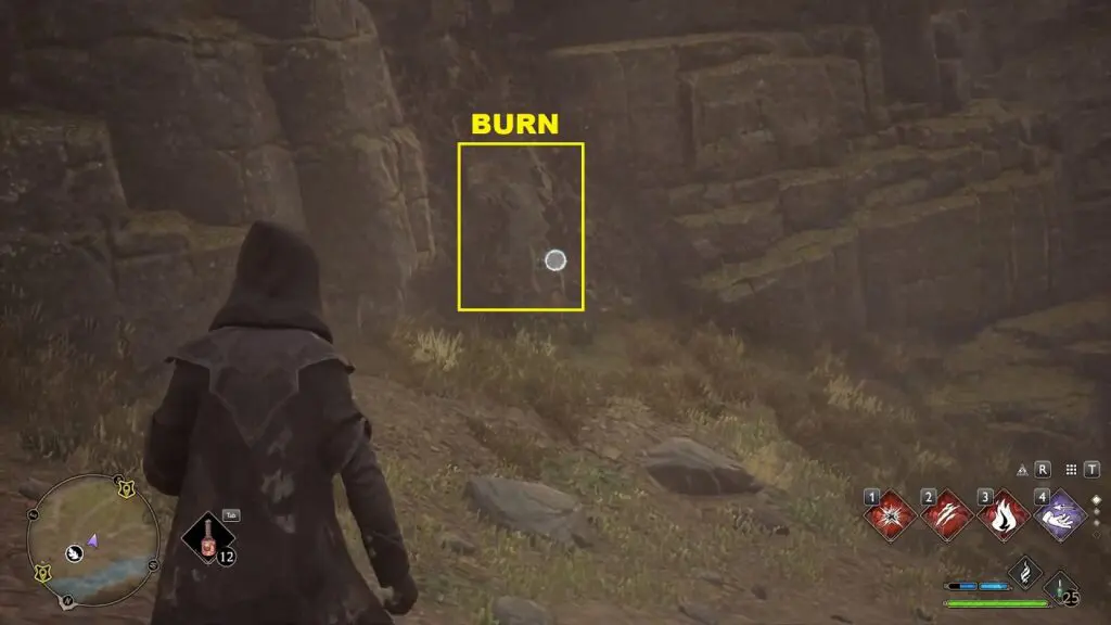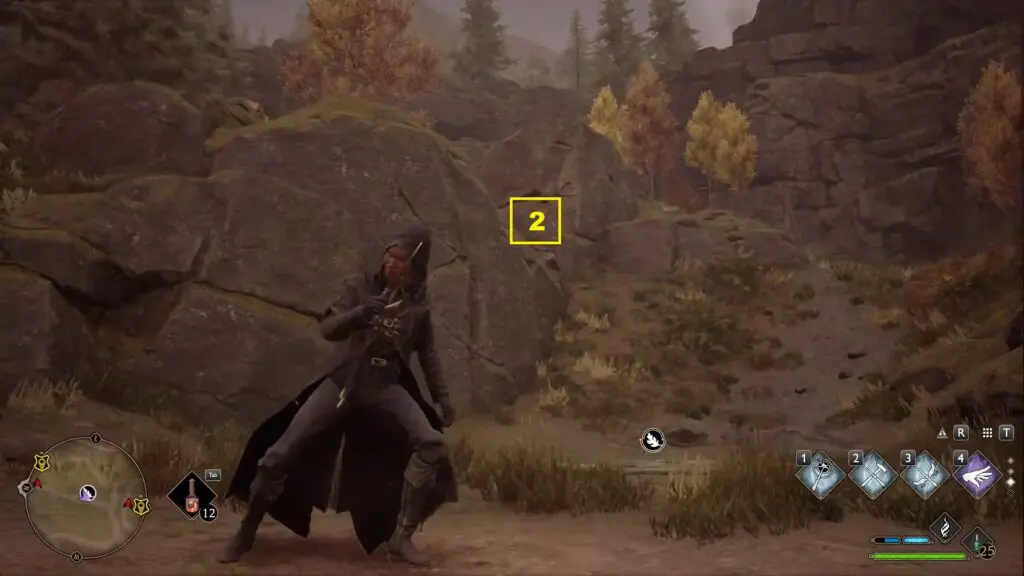 After using the Mallowsweet, three statues will break down. You need to use the Reparo spell and repair these three statutes to complete the trial. Statue #1 is on the northwest side of the trial as shown in the second picture below Statue #2 is inside the cracks on the mountain wall as shown in the third picture below. Take the path going north side of the trial to reach Statue #3 on the right side of the path as shown in the fourth picture below. Repair the three statues to complete the trial.