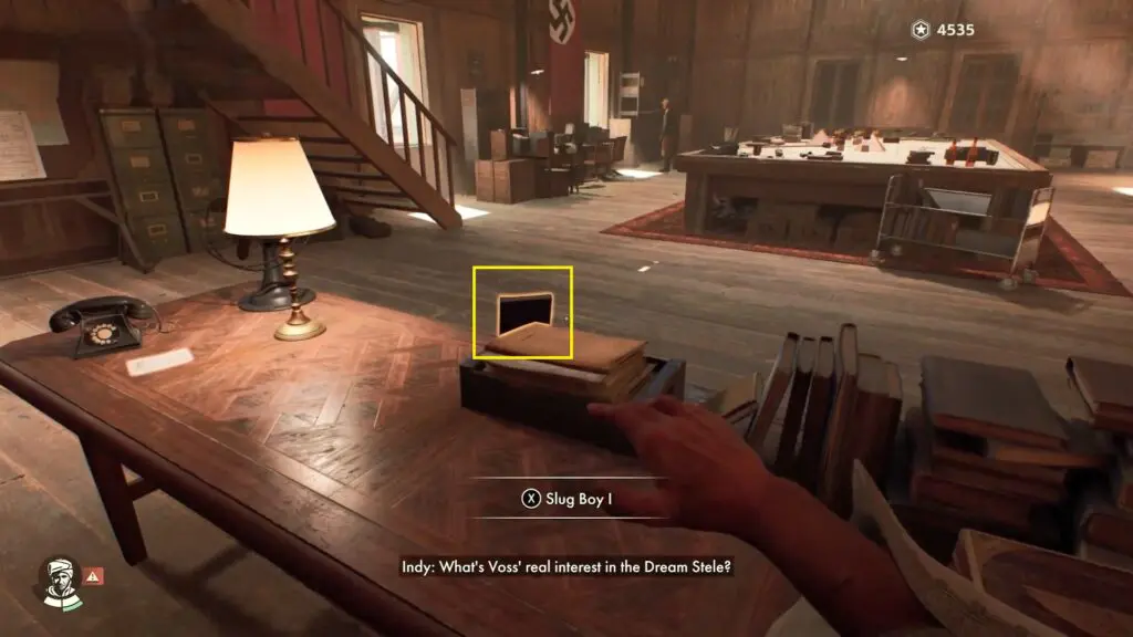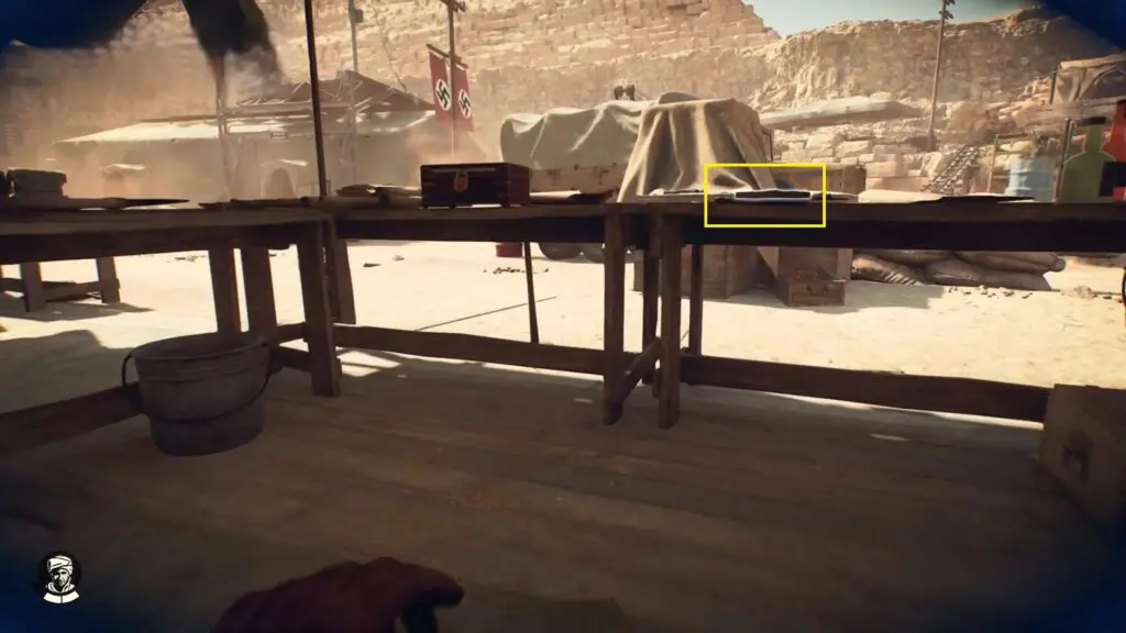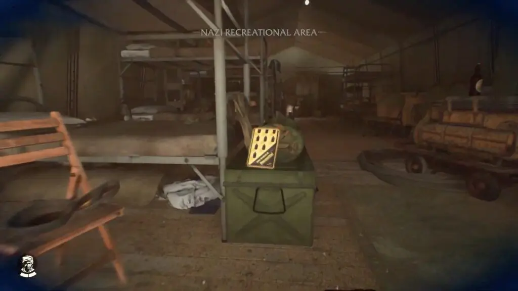 Head to the Nazis’ recreation area and look for the book inside a trunk within the largest tent in the area.