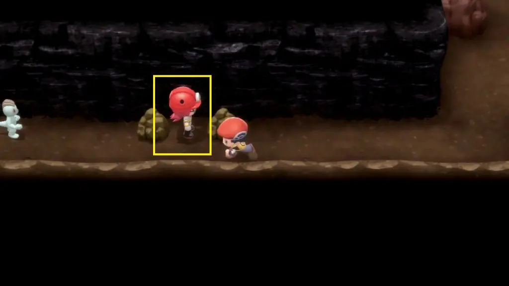 After defeating Trainer 1, proceed to the southwest side. Go to the end of the path, where you will find the trainer behind some trees as shown below.