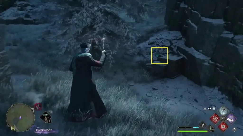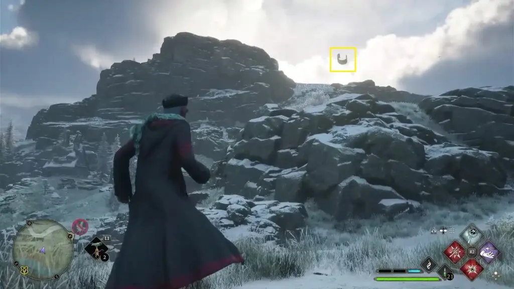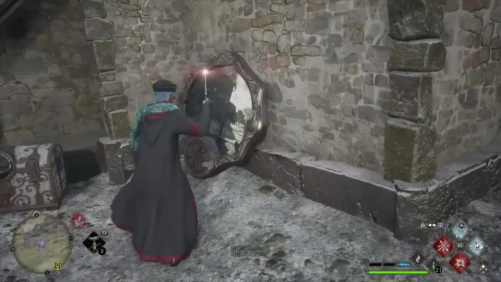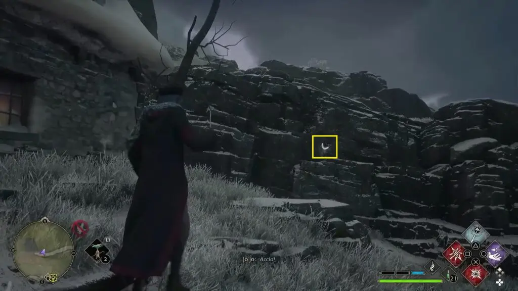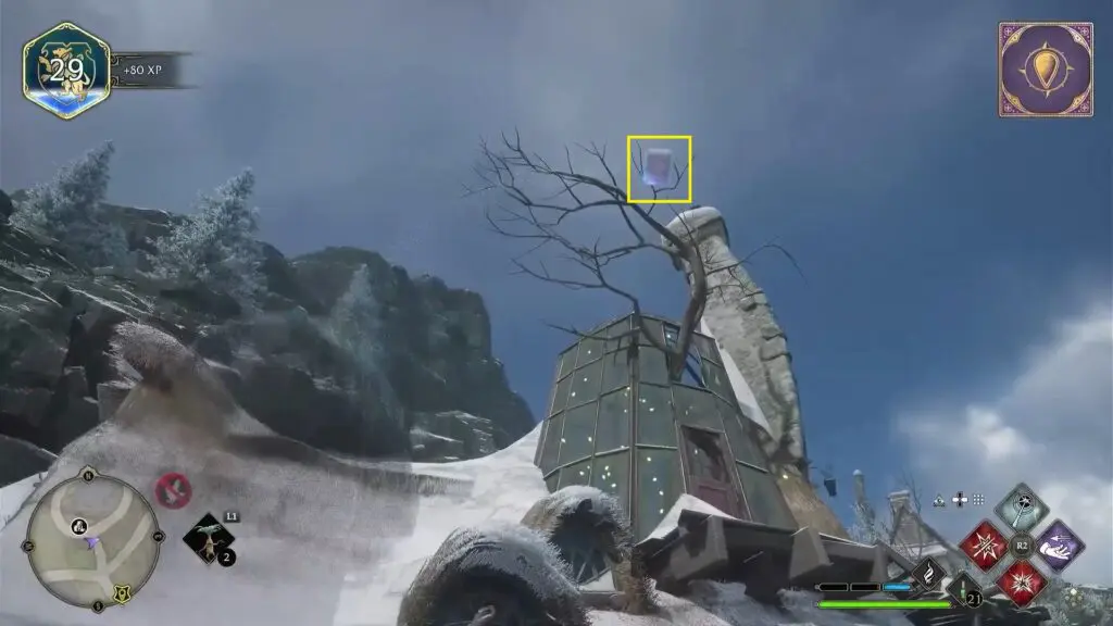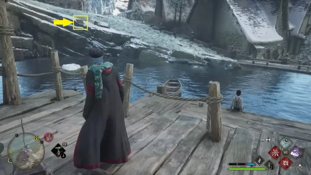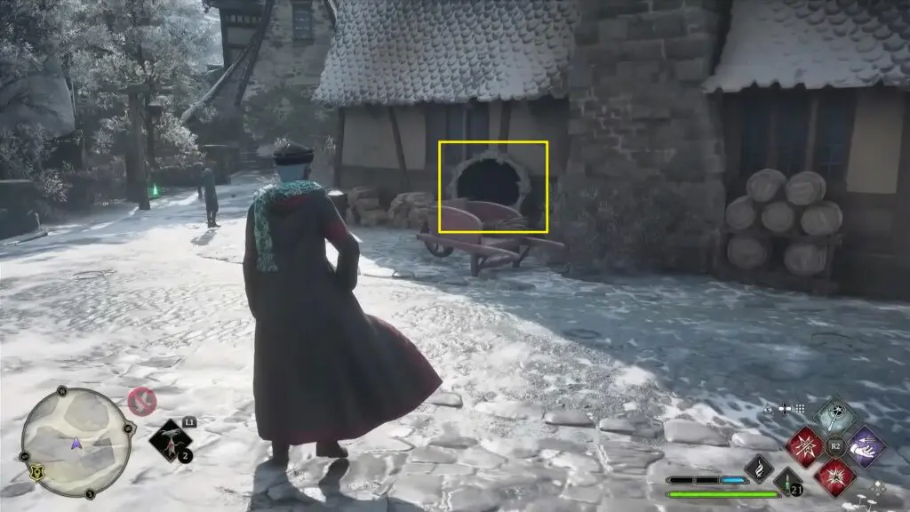 In the same area as the previous Field Guide Page, you will find a painting next to a chest as shown in the picture below. Use Lumos in front of the painting and it will reveal a location. Now jump across the wall opposite the painting. Then turn right to reach Hog’s Head Alley. From there, go through the gap next to the Hog’s Head Inn to reach the location marked in the painting. There you will find a moth as shown in the second picture below. Use Lumos and take the moth back to the painting. This will reveal a Field Guide Page in front of the painting.