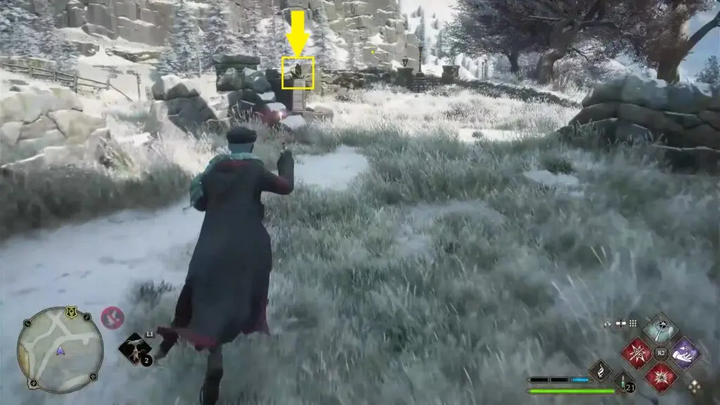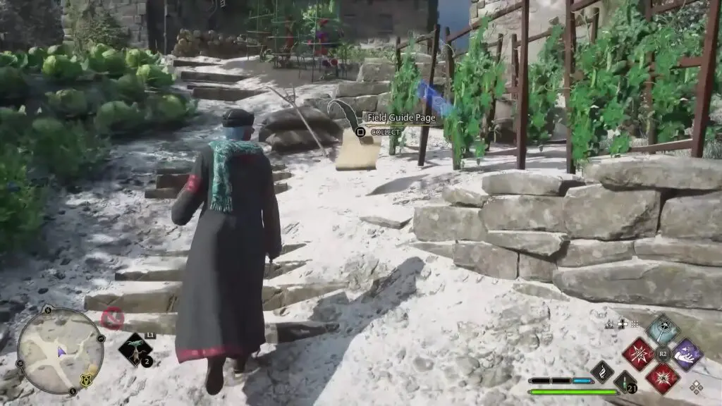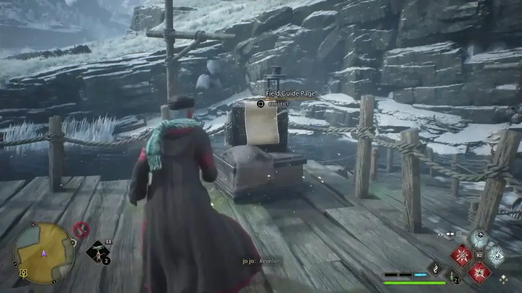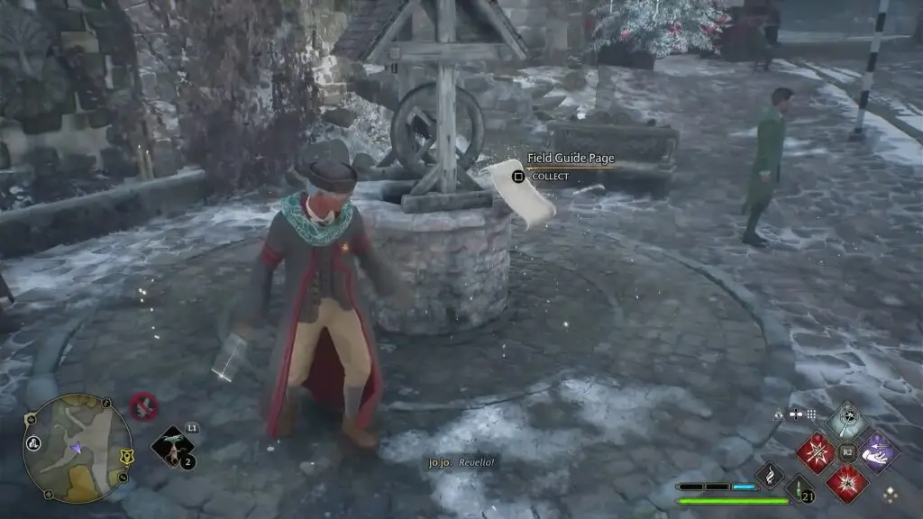 From the previous Field Guide Page, jump down on the south side to reach a well. Use Revelio in front of the well to find a Field Guide Page as shown in the picture below.