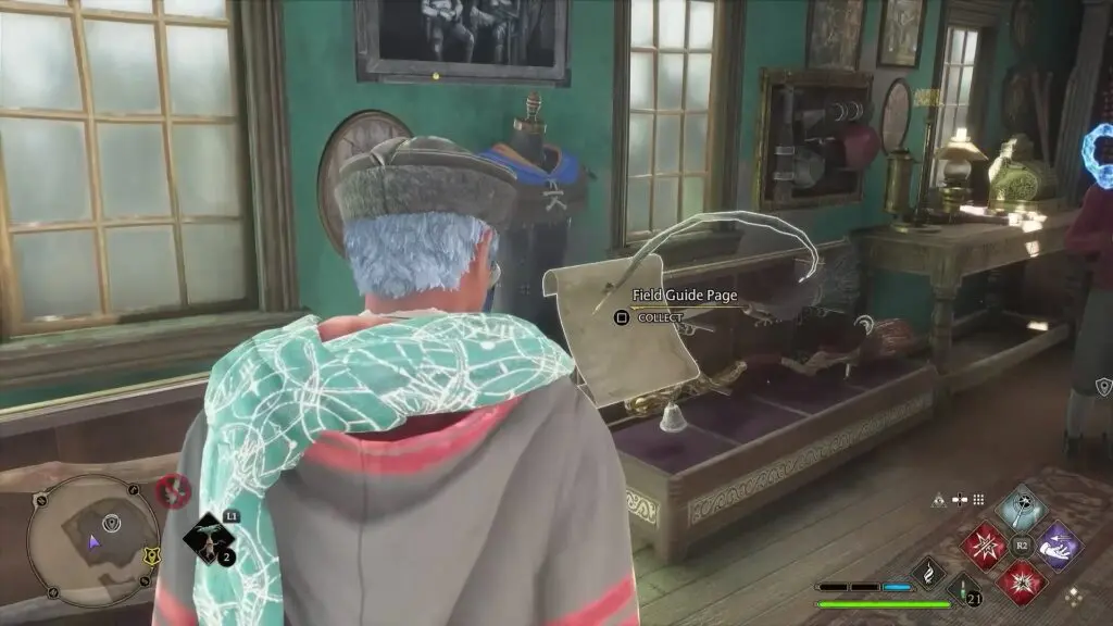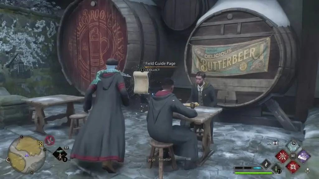 Enter Hog’s Head Inn and use Revelio at the bar counter to find the Field Guide Page.