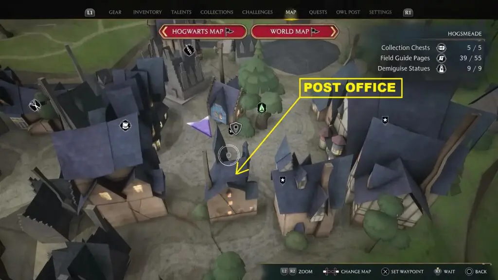 Enter the Owl Post Office as marked in the picture below and use Revelio to get the Field Guide Page.