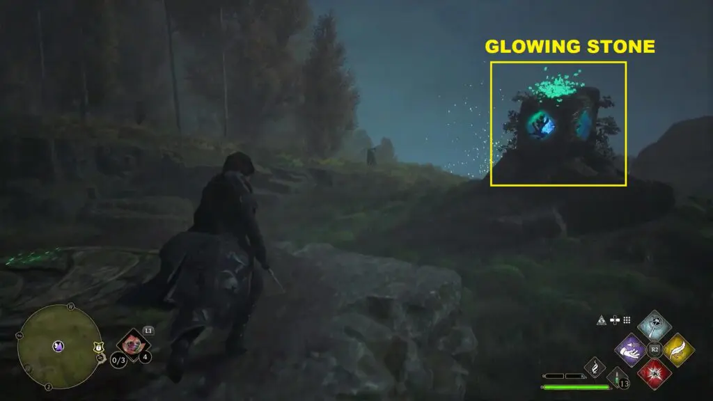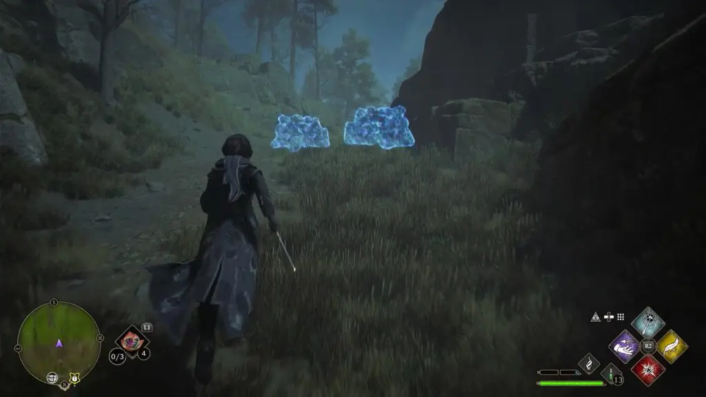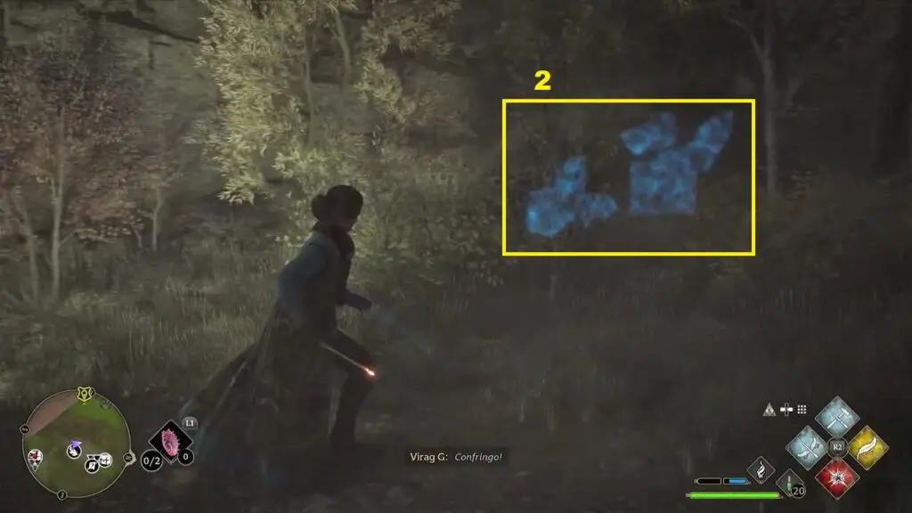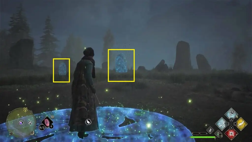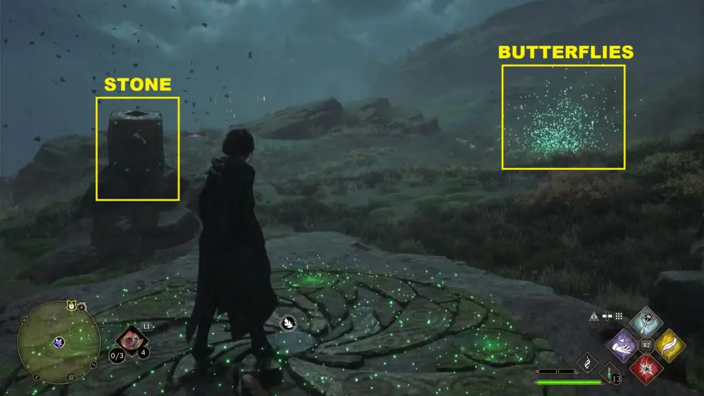 After using the Mallowsweet, three giant stone pillars will activate in the area nearby. The giant stones have moonlight gems inside them. You will also find clusters of butterflies in the area. Go near the butterflies and use the Lumos spell, which will make them follow you. Take them to the giant stone pillar, which will light it up. Light up the three giant stone pillars to complete the Merlin Trial. One of the pillars is on the east side of the trial and two are on the west side.