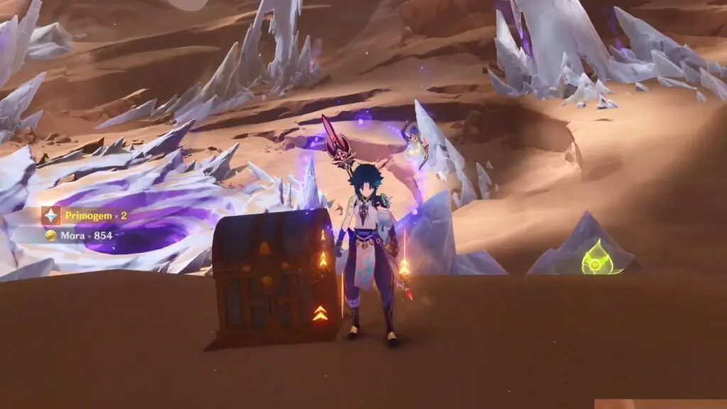 The 2nd Luxurious Chest is available during the world quest “As The Khvarena’s Light Shows: Nirodha“. At the near completion of the world quest, you will have to Use the Ruin Cannon to destroy the Golem’s core and then head to Obtain the Great Song of Khvarena. The Luxurious Chest is inside the tunnel waiting for you.
