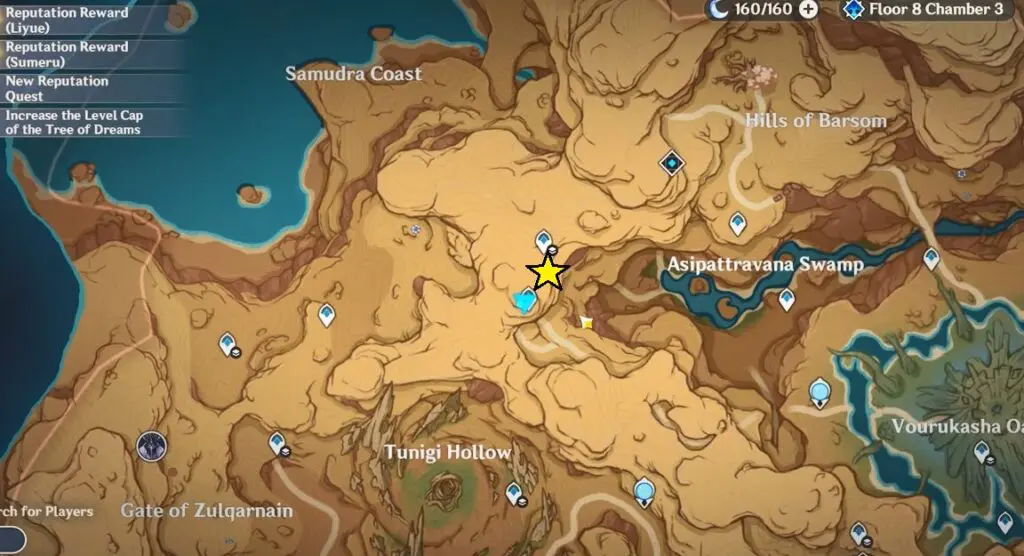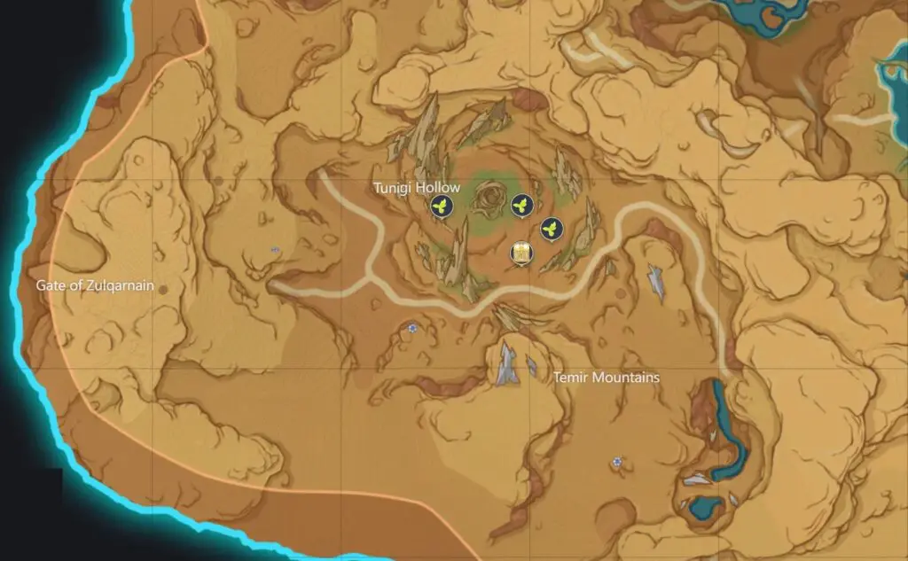 Go to the teleport waypoint to the east of Tunigi Hollow as marked on the map.