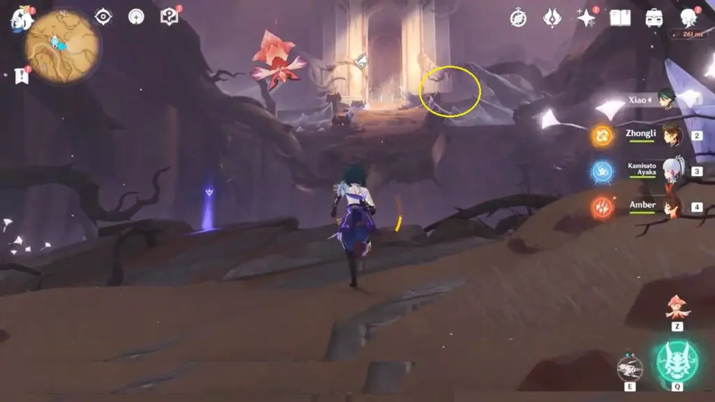 This Seelie is not trapped in the purple mist like the others but instead trapped inside an orange crystal on the south side above the ground level. To free the Seelie, players can utilize Sarush’s skill by picking up a nearby Nirodha Fruit and hurling it at the crystal