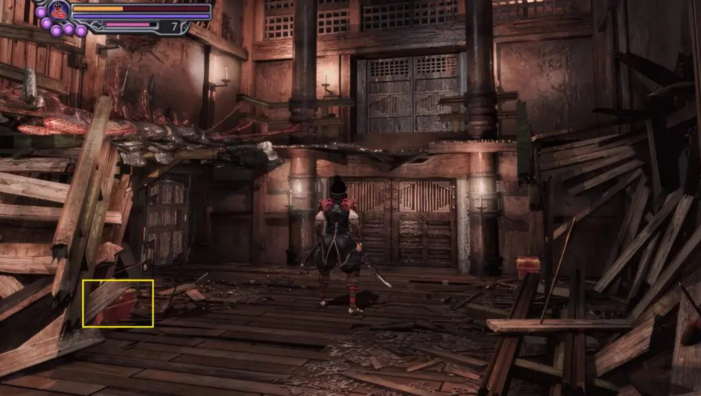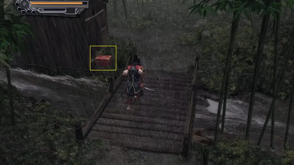 As Magoichi, cross the drawbridge and enter the room with the save point. Just beyond it, you’ll find a chest containing the map.