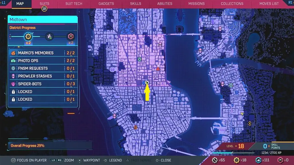 This guide shows the location of all Spider Bots in the Midtown district in the Spiderman 2 game, which released on 20 October 2023.