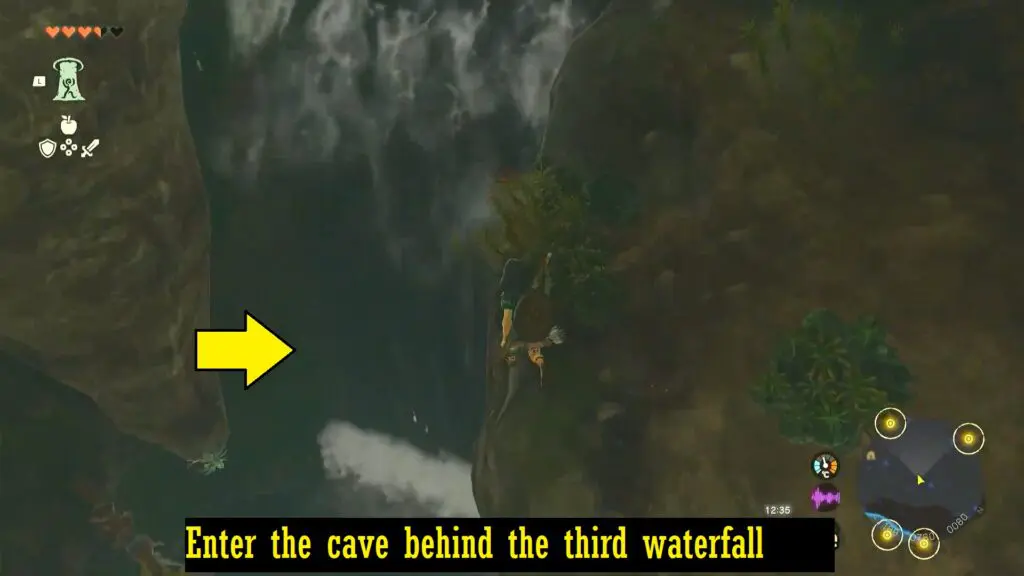 Enter the cave, and proceed deeper into the tunnels, clearing the path by cutting through vines, smashing rocks blocking the way, and eliminating the stone-throwing enemy.