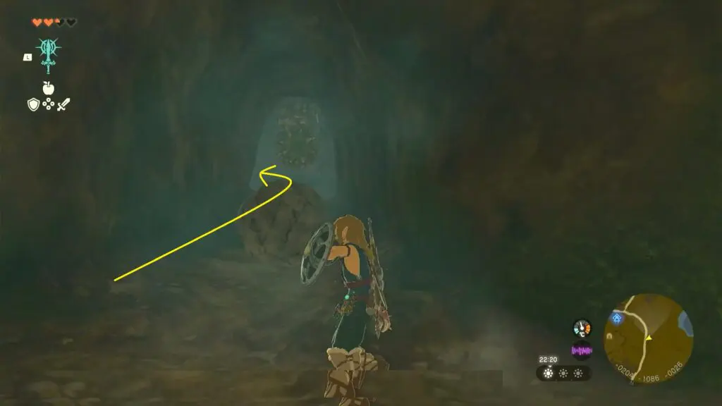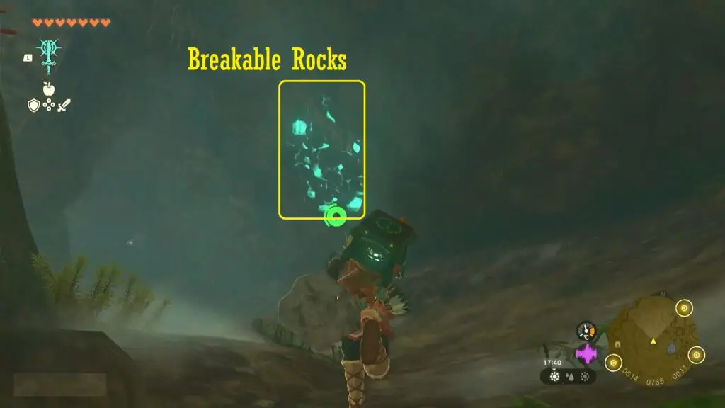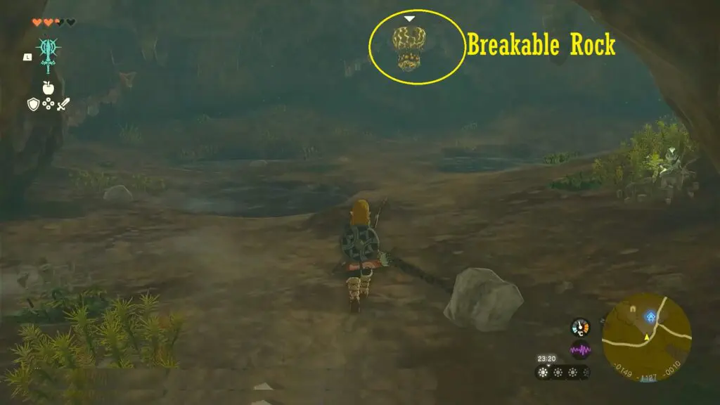 Upon arrival at the cave, you will encounter a Battle Talus in the primary chamber. Ignore this enemy and instead focus on shattering the rocks on the opposite ledge.
