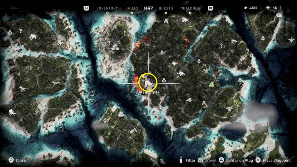 Bilegut is a Toad-like machine located below the center of the map, which will be highlighted as an Unknown Bilegut Site. It can be found roaming on the island
