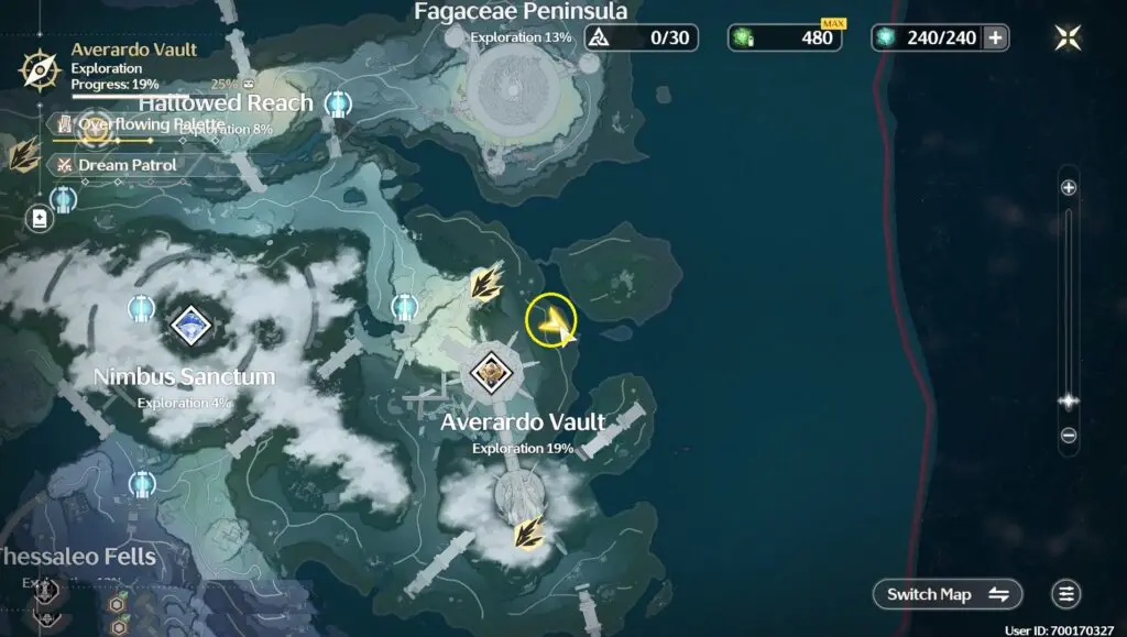 The first puzzle is located south of Averardo Vault and the location is marked below.