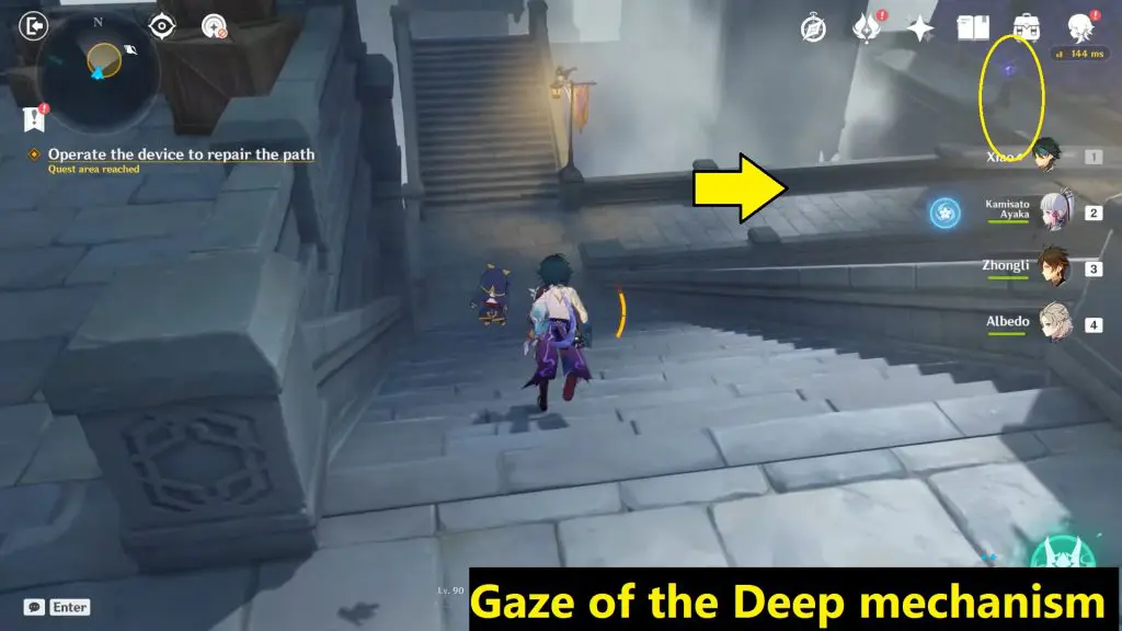 In the new domain, go north using the stairs going down and then go to the first Gaze of the Deep mechanism on the right.