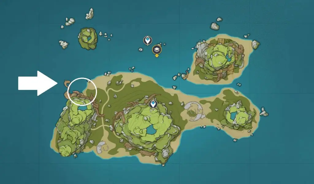 To the northwest of the teleport waypoint of the main island, on top of a rock close to the shore.
