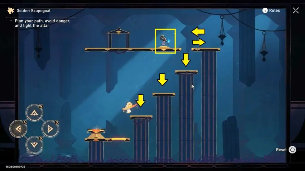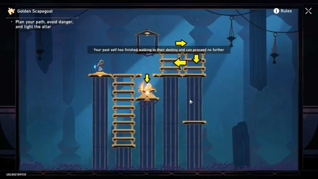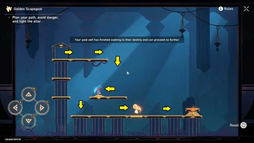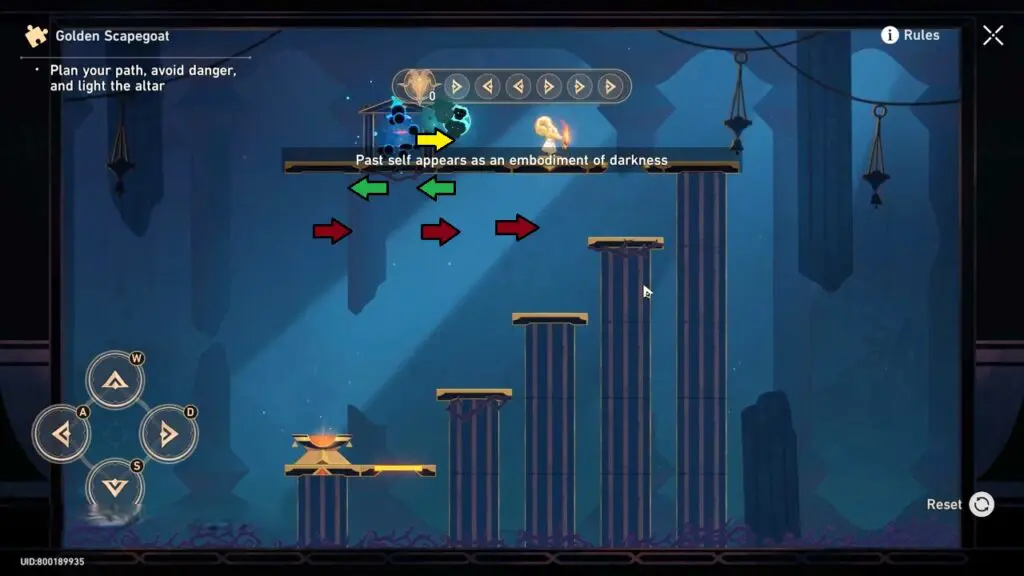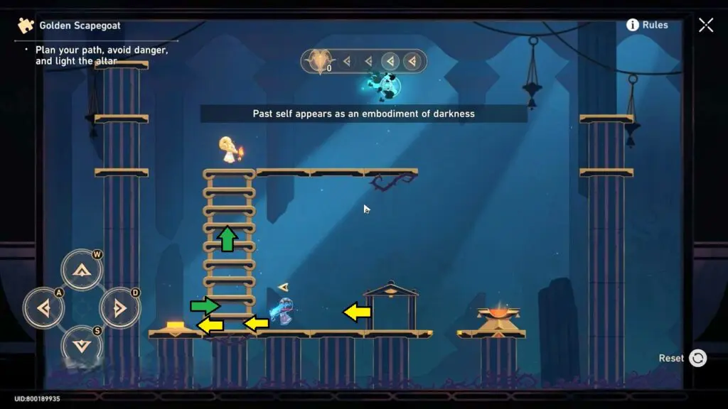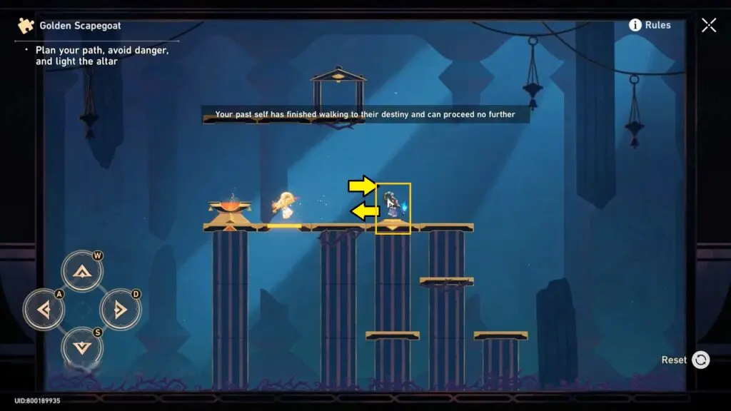 Keep moving back and forth until the shadow lands on the button. Then, drop down to reach the pedestal and end the puzzle.