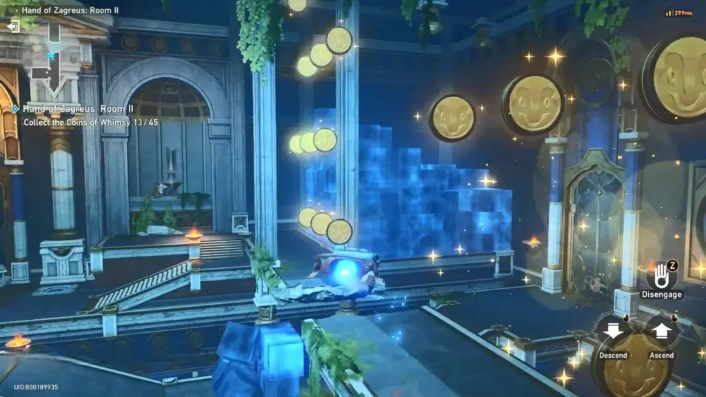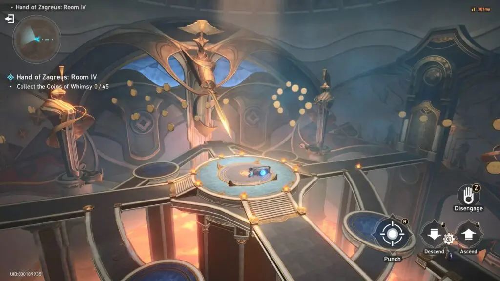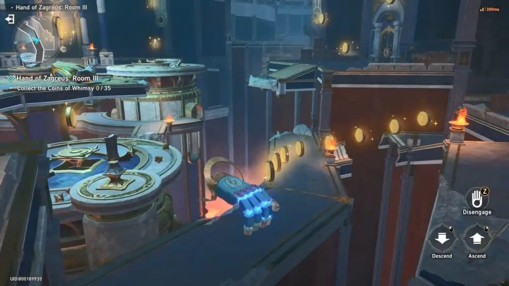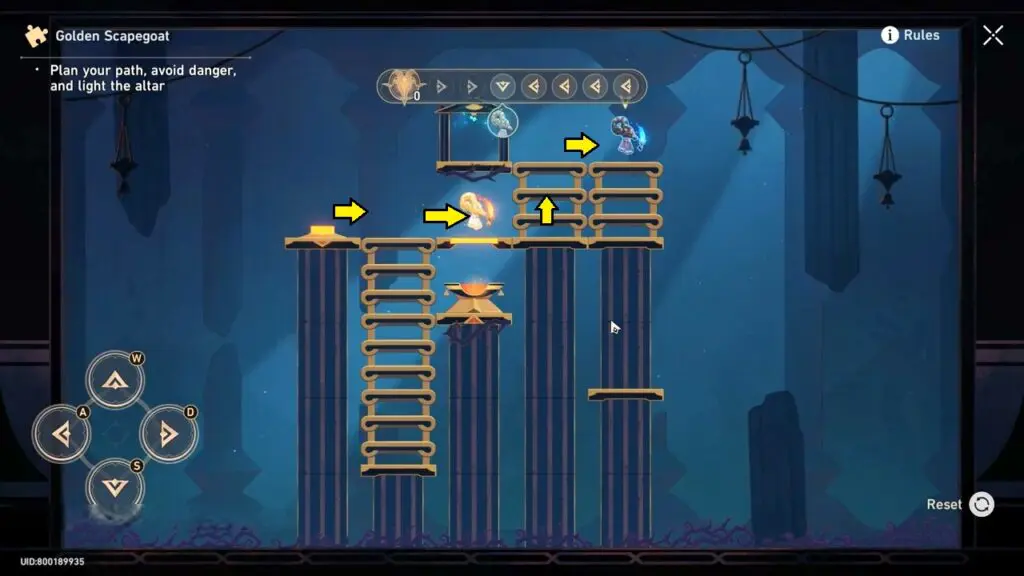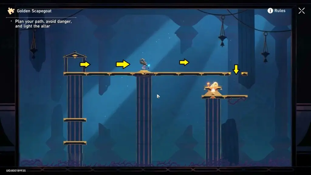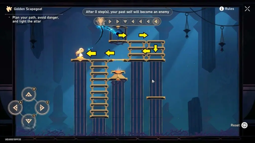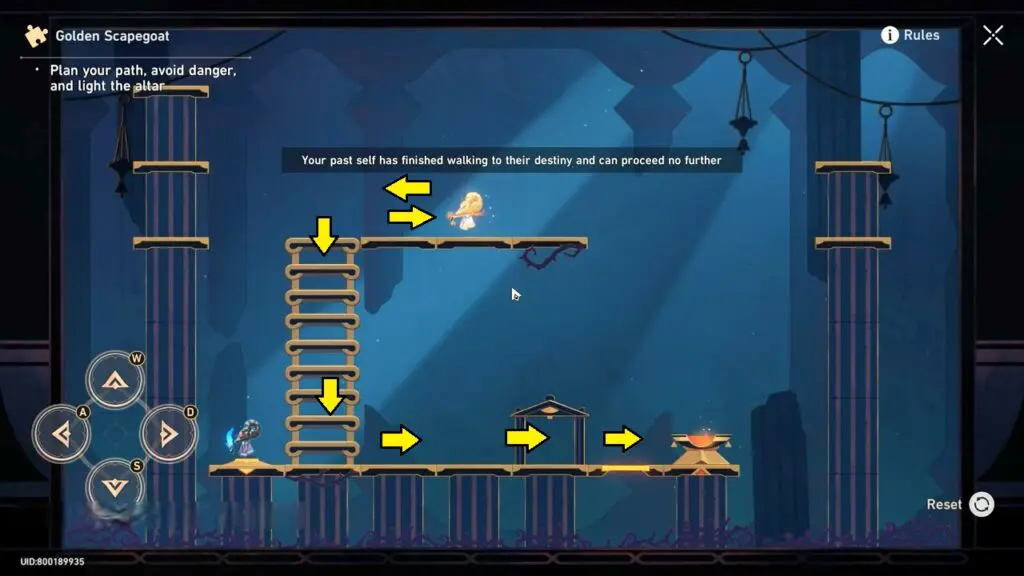 Keep moving back and forth until the shadow lands on the button. Then, drop down to reach the pedestal and end the puzzle.