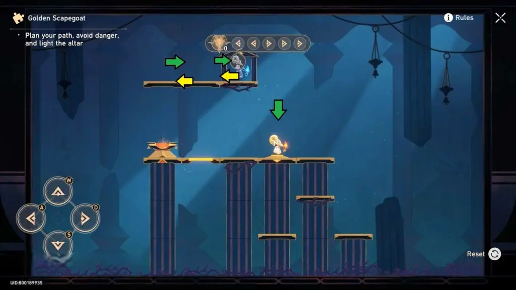 Keep moving back and forth until the shadow falls on the button. Then, head to the left to reach the pedestal.