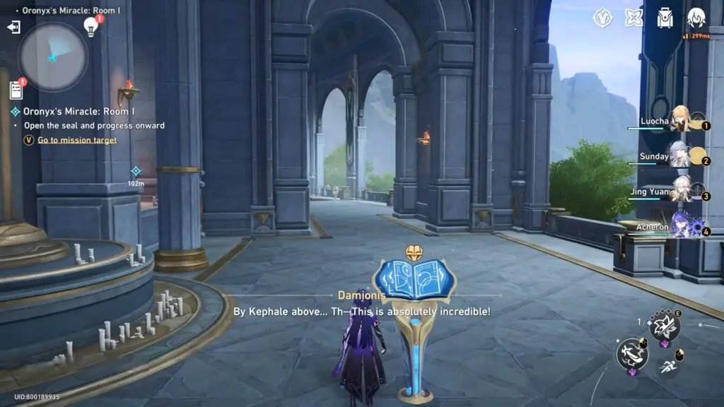 Continue to move ahead and interact with the next Tome of Miracles. Use Oronyx’s Prayer to fix the bridge and cross to the other side.