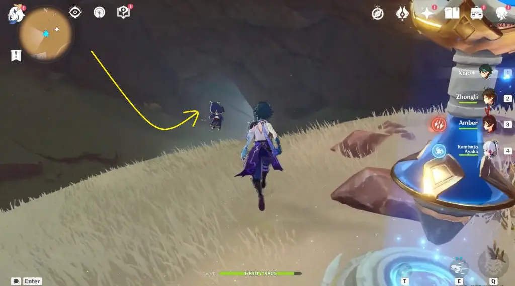 Continue through the underground section until you reach a large area with a Teleport Waypoint. Look below and glide down to find the sacred seal located next to a Primal Sandglass puzzle.