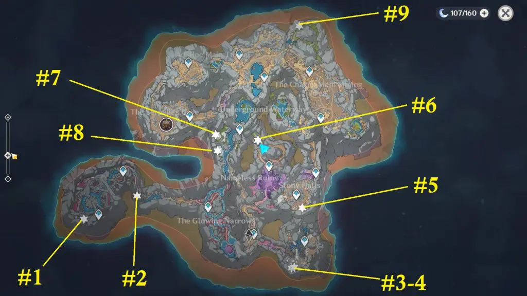 This guide shows how to find the location of all 9 secret messages in The Chasm in the game of Genshin Impact 2.6, which was released on 30th March 2022. Collecting all the secret messages grants the Wonders of the World Achievement “The Nine-Word Rumor”.