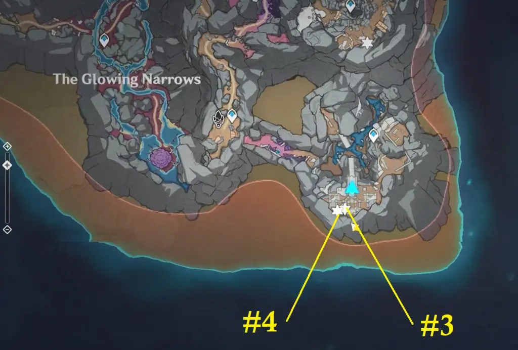 Located on the path going west of the Glowing Narrow area. The location is marked below.