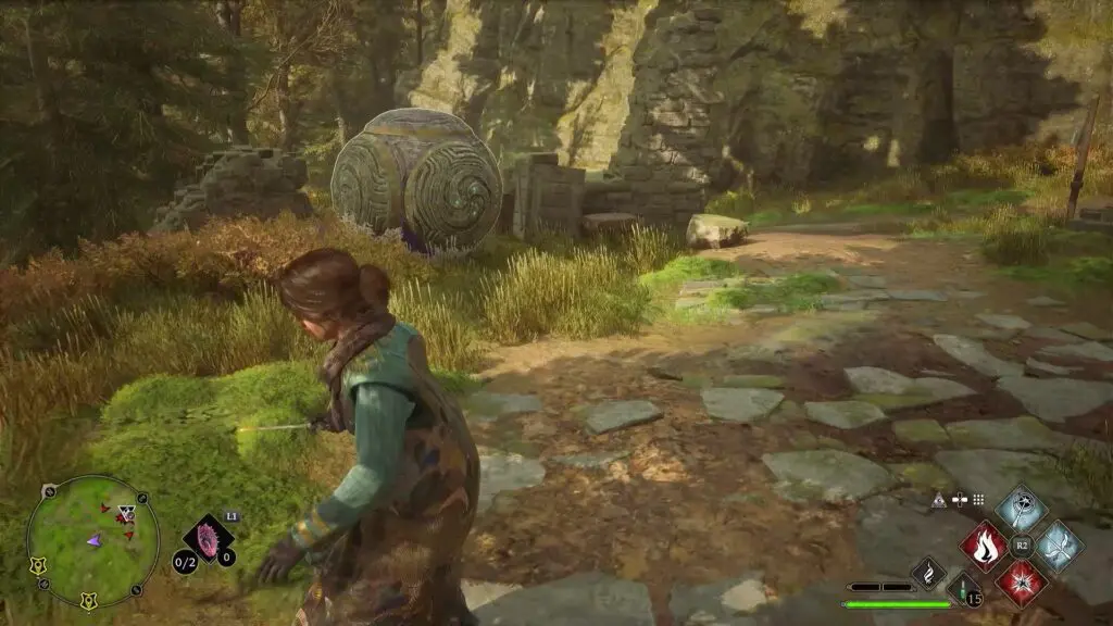 After using the Mallowsweet, destroy the five stone pillars around the symbol as shown in the pictures below to complete the objective.
