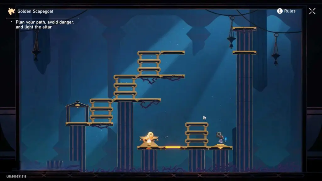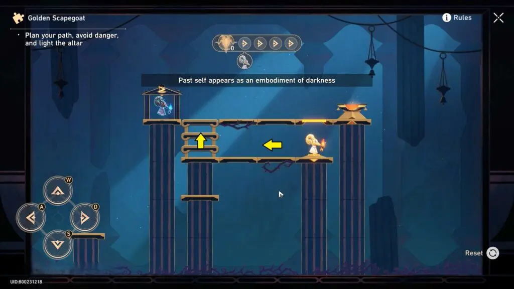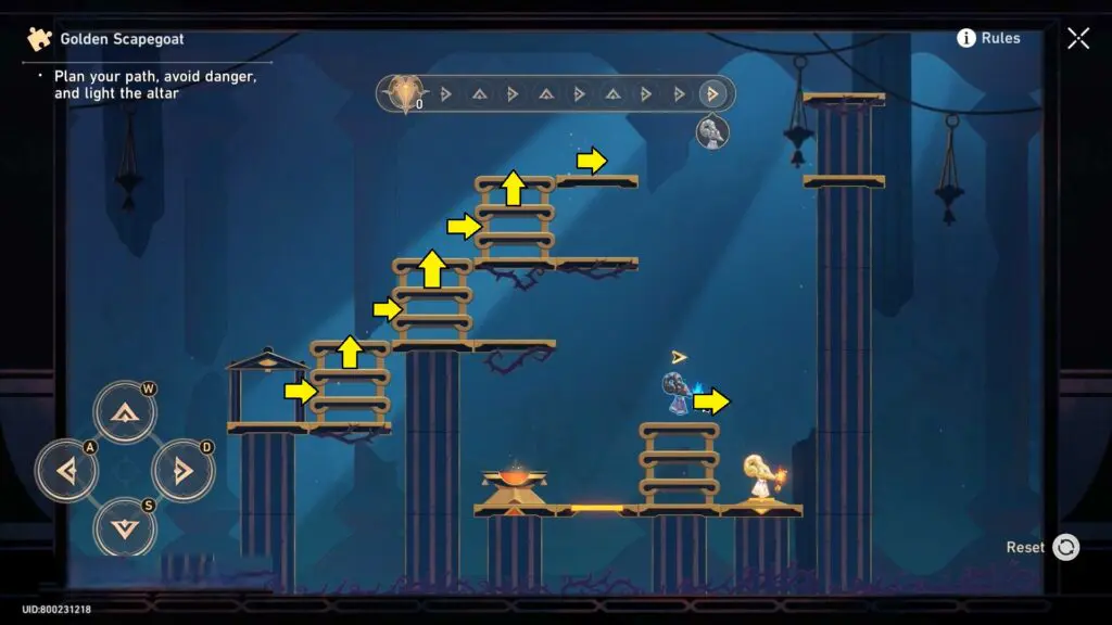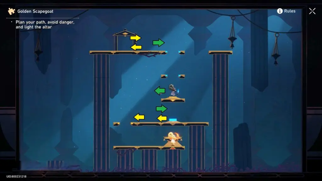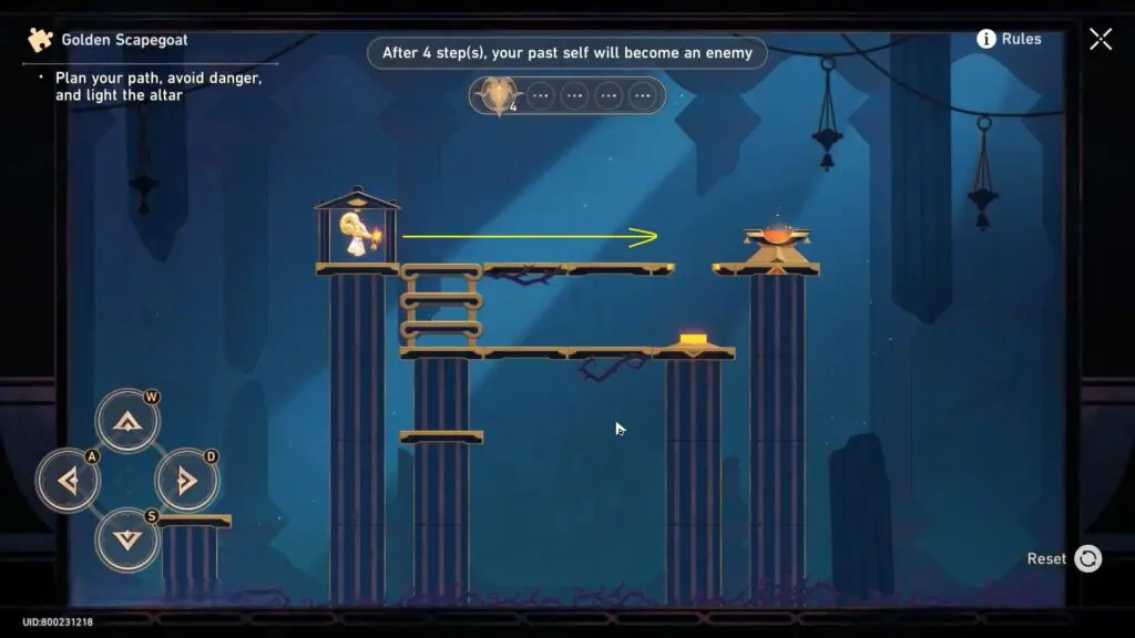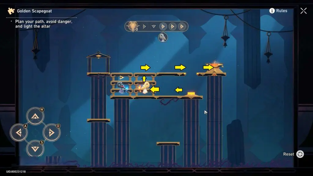 Make the Golden Scapegoat reach the pressure plate on the end by following the path below.