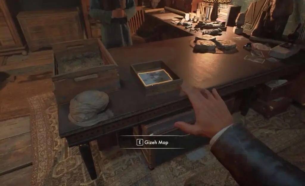 The Gizeh Map is located on the table at the beginning of the mission, right after the initial cutscene.
